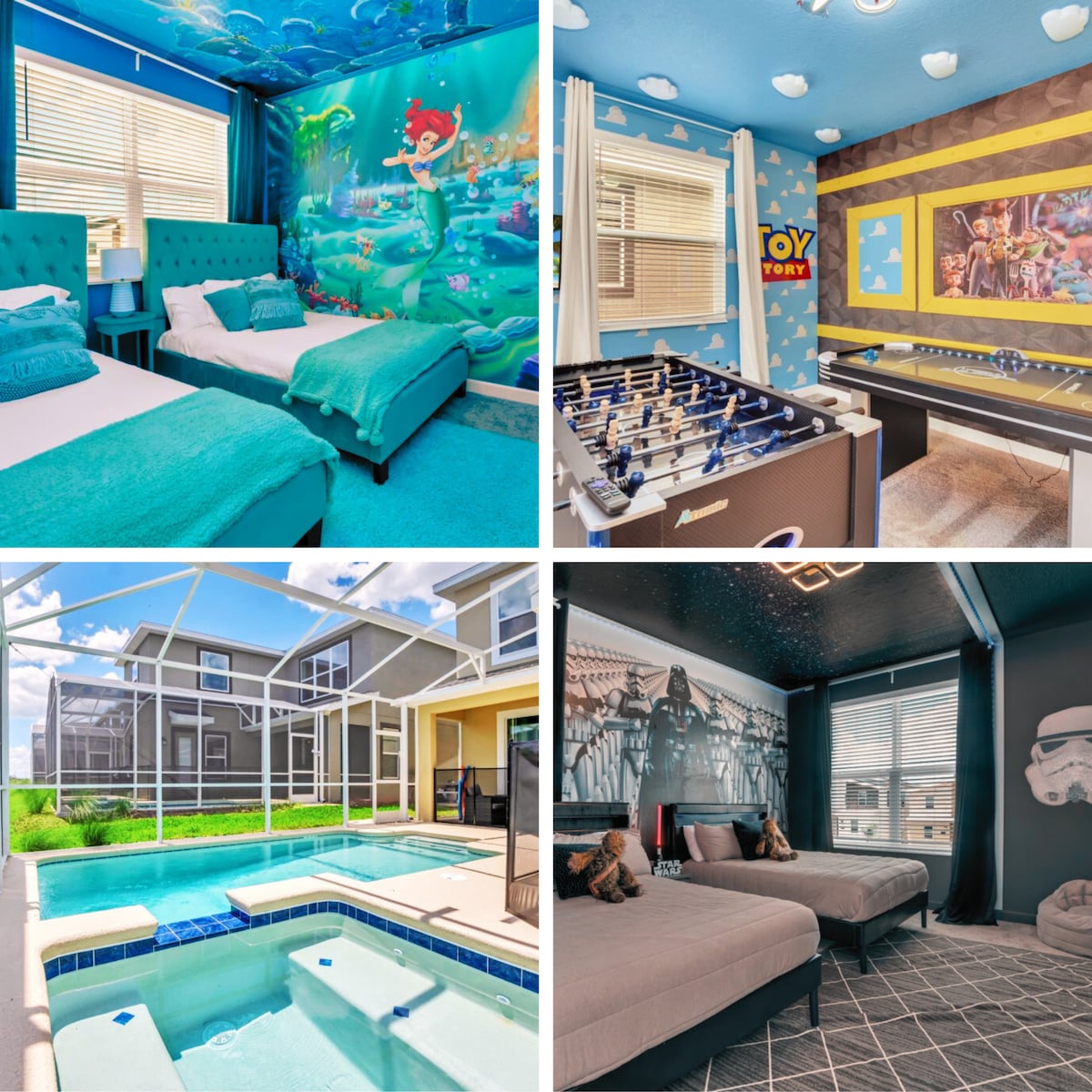 The perfect balance of STYLISH DESIGN, LUXURIOUS COMFORT, & ENDLESS ENTERTAINMENT, beautifully situated directly on the Jack Nicklaus PGA golf course in the stunning 3.5 square mile Reunion Resort. You will have your own private pool with waterfall, spillover spa, STAR WARS cinema- billiards game room, incredible MARVEL kids room with integrated tube slide and double bunks, both an Xbox and PlayStation, minutes to Disney.