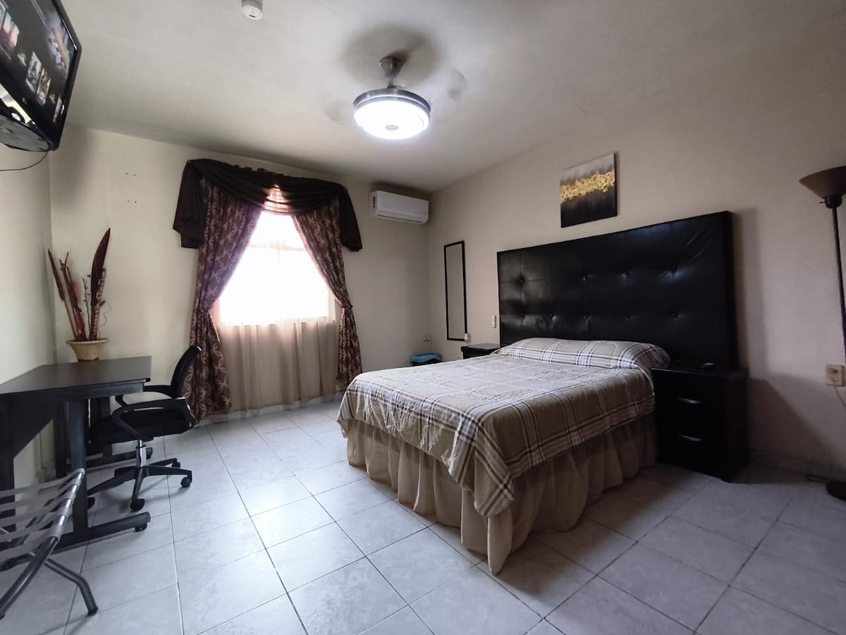 Beautiful and spacious house * Double-height living area that makes it very inviting. * Two bedrooms with high ceilings, each with a walk-in closet and bathroom. * Enclosed garage with an electric gate for added security. * The entire house is full of thoughtful details that enhance your experience. * Master bedroom with air conditioning and second bedroom with a fan and heater.