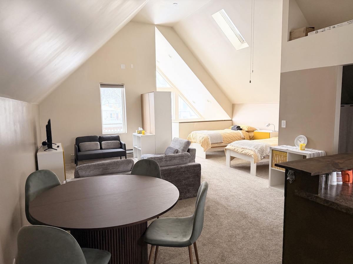 Bright and sunny Oak Park jumbo garden studio, steps from cute downtown, train to Chicago, and amazing local tourist destinations- like the Hemingway Home and the Wright Studio. This welcoming studio was completely rehabbed and updated. We put a lot of care into designing a relaxing apartment with all the amenities. The main room features a king-sized bed, office nook, and fully stocked entertainment area, with games, books, and a TV. The spacious kitchen and luxurious bathroom are brand new!