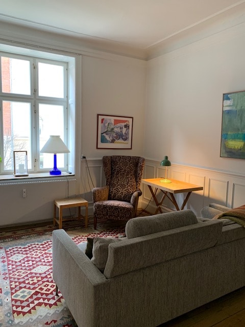Lighty and cosy apartment in the centre of Frederiksberg, Copenhagen's elegant neighbourhood, with neoclassical houses, fancy restaurants and stylish coffee shops. Frederiksberg Garden, is one of the biggest parks in the city, ideal for a picnic or a relaxed walk. The apartment is close to the metro station from which you can comfortably reach the entire Copenhagen.