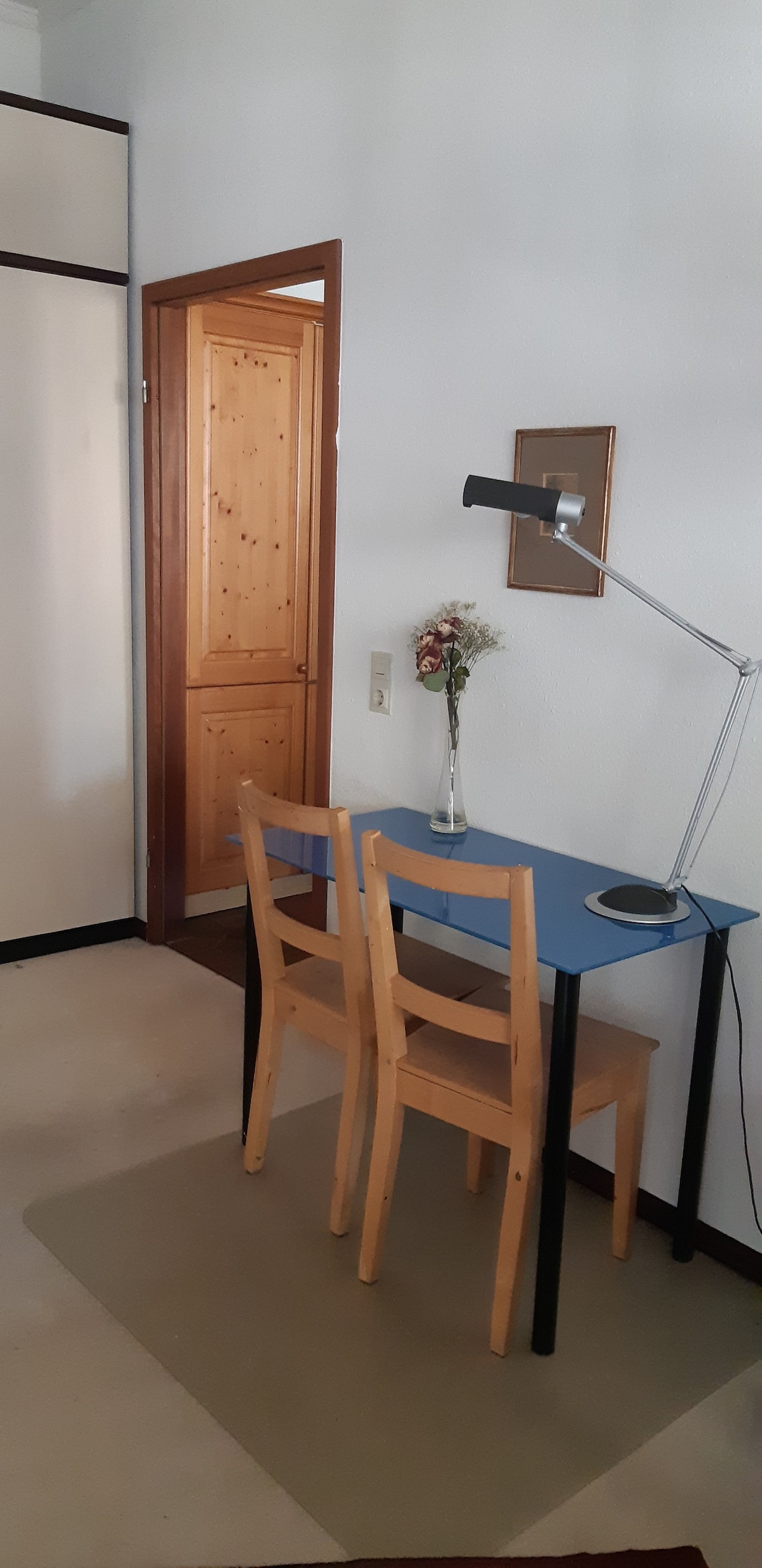 Nous vous invitons dans une chambre extraordinaire à deux pas du centre ville de Fribourg; au calme avec accès au balcon et vue sur le Schlossberg et la vigne. Proche de tout commerce, mais aussi des balades en nature. La chambre, récemment renovée, est équipée d'un lit double (140×200), divers placards et d'un espace travail.