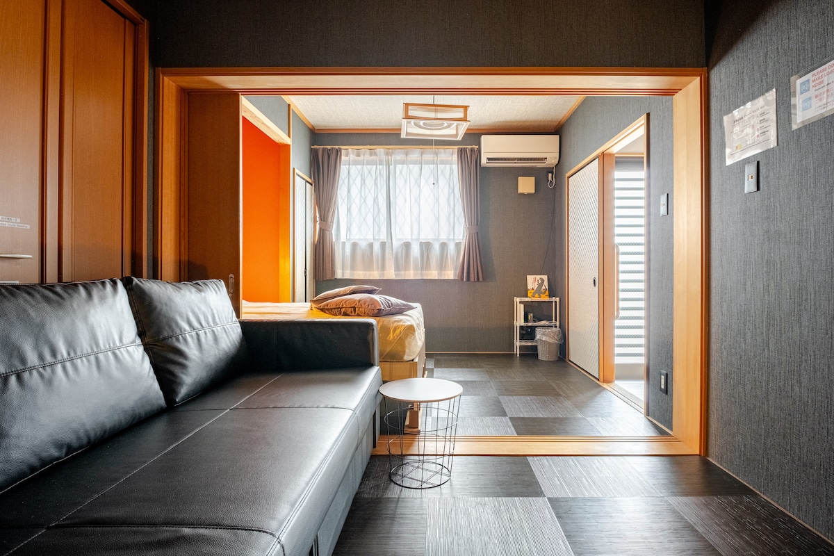 re.寛ぎのお部屋へようこそお越しくださいました♪ こちらのお部屋は名古屋駅、栄から電車で約10分の池下駅より徒歩3分の便利な場所にあります。中部国際空港からはタクシーで40分です。名古屋観光や京都や岐阜、三重への観光の拠点に、車でも電車でも便利な場所です。周辺には有料駐車場が多数あります。 徒歩5分圏内に、スーパーマーケットやドラッグストア、コンビニエンスストアがあり、暮らすように旅をするのに便利です。地元の人に人気の美味しいレストランの多い地域です。災害にも安心な地域で人気の住宅街です。 徒歩10分圏内に、繁華街の今池や、日泰寺、古川美術館、日本庭園のある為三郎記念館があり、散策が楽しめます。 「旅の疲れを癒す」をコンセプトに、日本と北欧をミックスしたジャパンディスタイルのインテリアです。キングベッド1台に、冬はこたつ、夏は低めのソファーとテーブルでゆったりと過ごせます。グレーをベースカラーに和の色彩の山吹色をアクセントカラーとした優しい色合いのお部屋です。 畳や日本の伝統工芸品の美濃和紙の照明、小千谷ちぢみの装飾、美濃焼きの食器で日本の生活をお楽しみください。