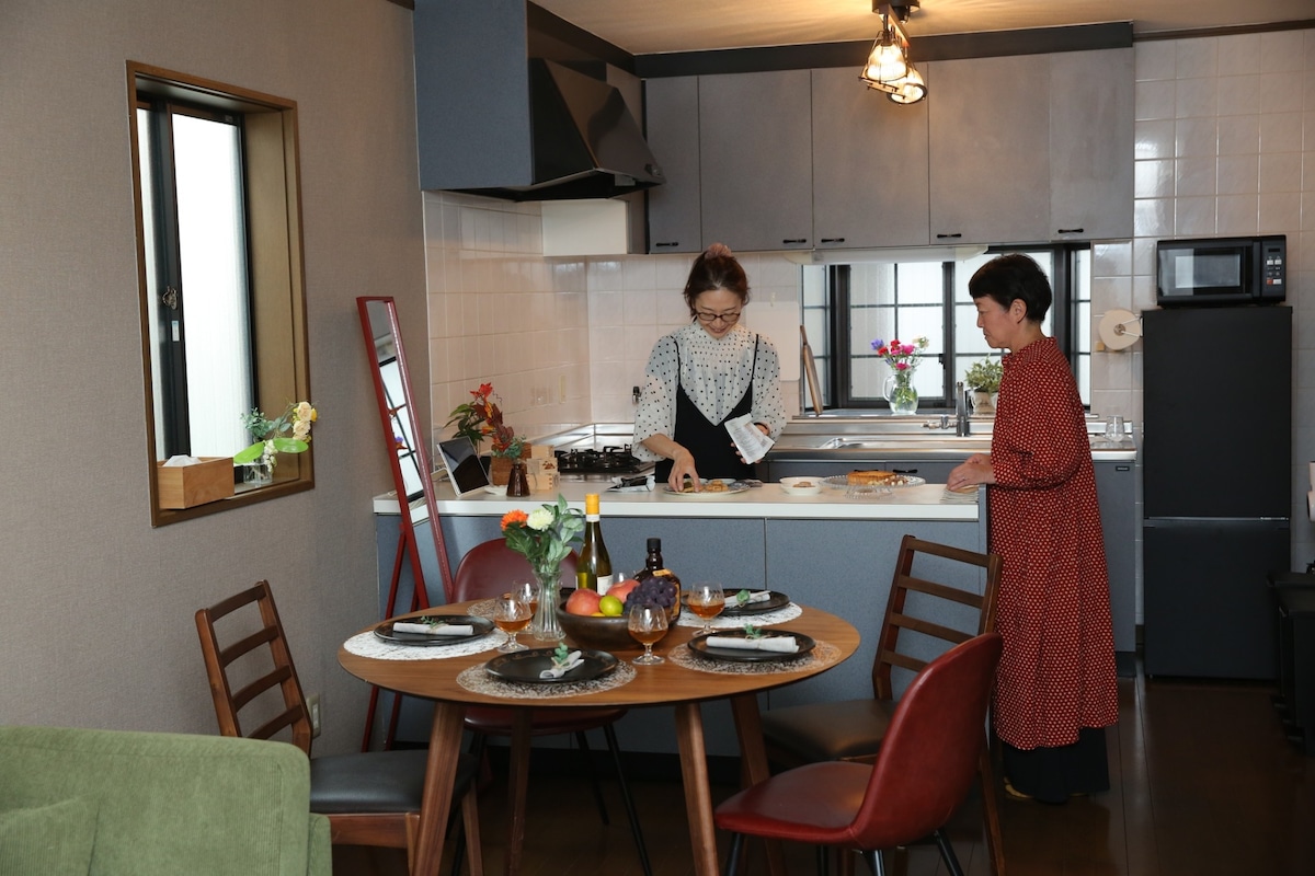 在明治时代的商家度过,特别的非日常 您想体验一日仅接待一组客人的奢华住宿,享受传统日本房屋的乐趣吗?这座有130年历史的商家(160m²),经过翻新后,既保留了当时的风貌,也兼具了现代的舒适。 旅馆附近有美丽的清流长良川,还可远眺岐阜城。每年5月至10月,您还可以欣赏到优雅的鹈鹕捕鱼表演(鵜飼)。 白天您可以在历史悠久的街区漫步,夜晚则在传统的空间中,享受仿佛穿越回明治时代般的特别时光。 最多可容纳13位房客(建议8人左右入住)。 ■ 主要设施 3间卧室、带搪瓷浴缸的浴室、独立淋浴间、2间卫生间 86英寸大屏幕显示器、Nintendo Switch、洗衣机、燃气烘干机、烹饪用具 ■ 特色 带挑高设计的天井、装有德利尔电话的旧木制电话亭、楼梯下方的保险柜、可从中庭窥见的土藏等 ■ 交通 提供4个免费停车位 从名古屋站出发,驾车约50分钟,乘坐电车或巴士约40分钟 从岐阜站出发,驾车约12分钟,乘坐电车或巴士约20分钟 ■ 周边漫步 以旅馆为据点,可以轻松游览岐阜公园、川原町、伊奈波神社等历史悠久的街区。