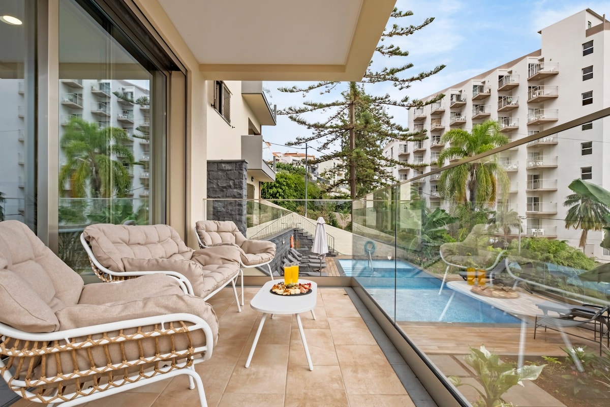 MODERN APARTMENT in Savoy Residence Insular, a residential building in central Funchal - 153 sqm internal PRIVATE PATIO with dining area and lounge chairs - BREATHTAKING SHARED INFINITY POOL and sunbathing area with open ocean and city views - HIGH-END DESIGN and amenities - WALK to Funchal's top restaurants and sites IDEAL ONE COUPLE OR A SMALL FAMILY Choose this exclusive home over a 5-star hotel for a premier Madeira experience in the best central location in Funchal.