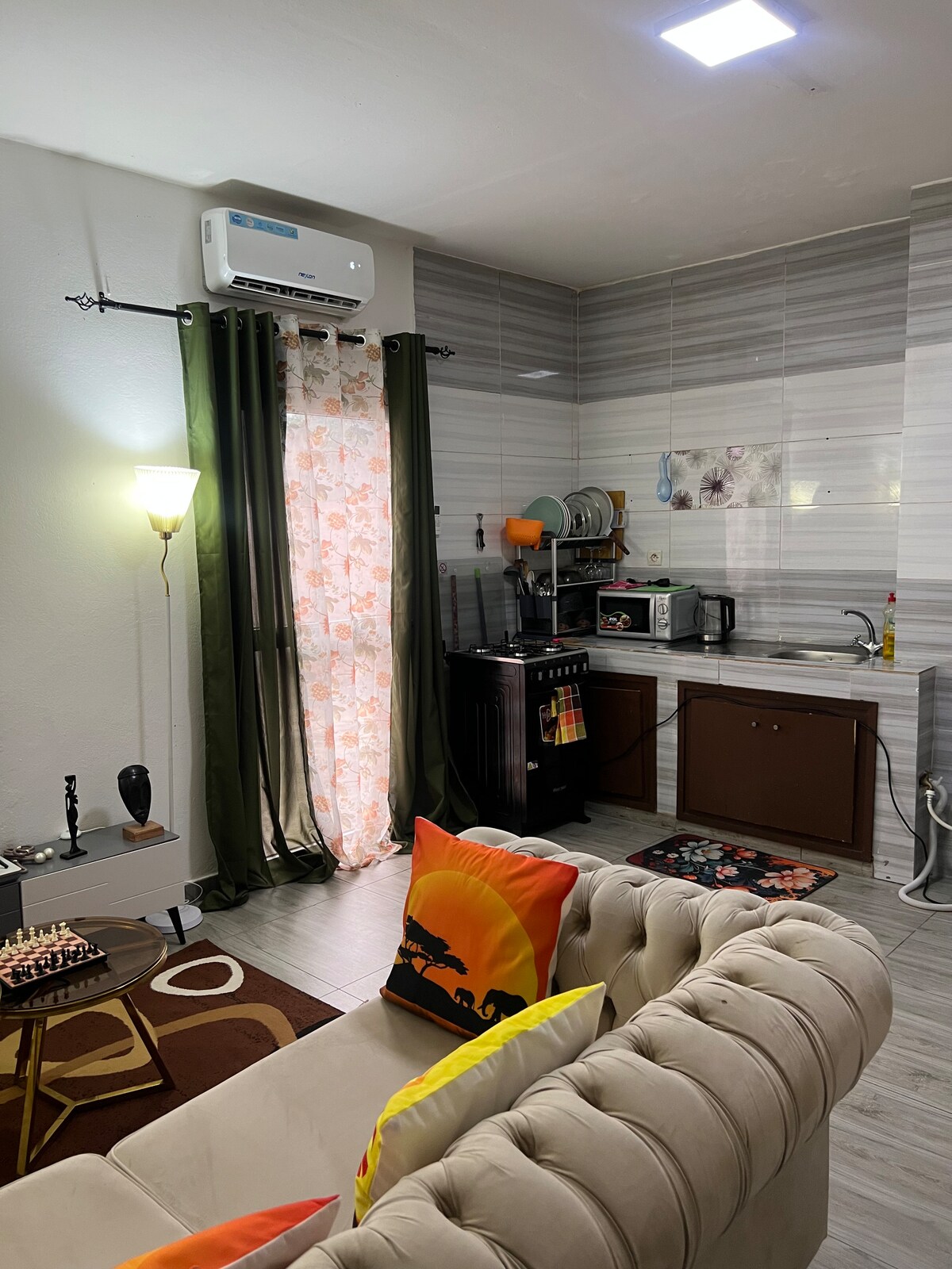 Wake up in my stylish one-bedroom apartment where a contemporary modern design meets a classic cozy look, bringing together privacy and elegance. It is centrally located : 2 minutes from the United Nations House, 5 minutes from the airport and the city center, 10 minutes walk from the bakery "PAUL" and various exciting entertainment and dining options nearby. Enjoy the serene view of the ocean with its gorgeous sunset before and after work.