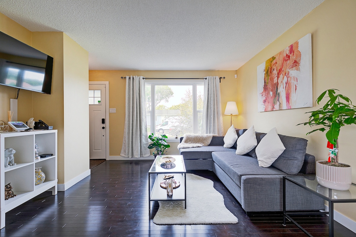 This is a perfect home for both a weekend family visiting WEM or a long term stay for business trips in Edmonton. Conveniently located in West Edmonton, close to all amenities, grocery stores, 6 mins to West Edmonton Mall and less than 15 mins to downtown! Your home away from home - beautifully renovated 2 Bedroom (+ pull out sofa), 1 Bath home with stocked kitchen, comfortable beds & close to all amenities! 7 mins to WEM.