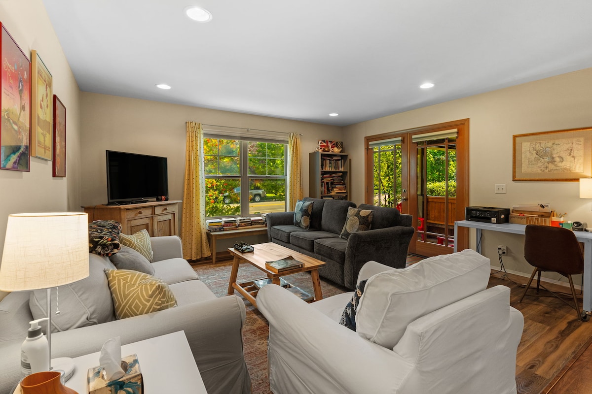 Located in a quiet neighborhood only 3 blocks from Downtown Bozeman, this town house encompasses the front portion of the main house. This is a very unique property with private living quarters (owner occupied) on the backside of the main house with basement and attached to the living space above the garage. There is also a separate Airbnb apartment (no kitchen) upstairs with its own private entrance, called the RedChair Retreat. These spaces are separate and private. - STR23-00001