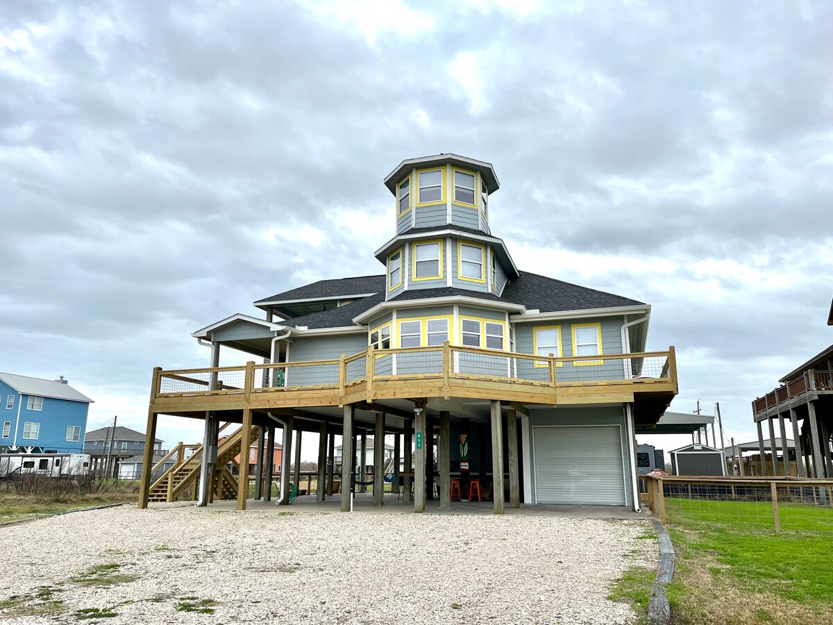 Welcome to Sunny Beach Escape, a bright and colorful beach home with more than enough space for the entire family, including your furry friend! Enjoy ocean views from the multiple decks, cook a meal in the fully stocked kitchen, or host a family game night with one of the games in our collection. The kids will love the tree house and open yard! Steps away from Sunny Beach 6 Min Drive to Galveston Island State Park 12 Min Drive to Downtown Experience Galveston With Us & Learn More Below!