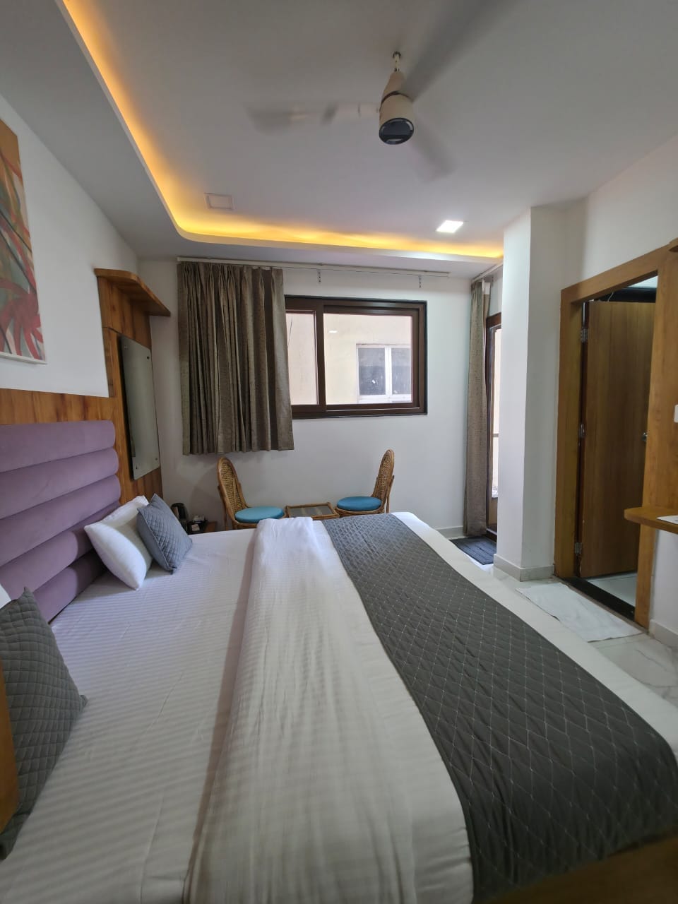 This deluxe room features 1 large bed or 2 twin beds, along with an extra bed, perfect for up to 3 guests. Just 5 minutes from the Taj Mahal's entry gate, this Airbnb offers a spotless, well-maintained space with exceptional service standards. Enjoy a swimming pool, bar lounge, gym, spa, and cozy beds—everything you need for a perfect stay. The helpful and attentive staff are always ready to assist you. Whether you're traveling for leisure or work, we ensure a memorable hospitality experience.