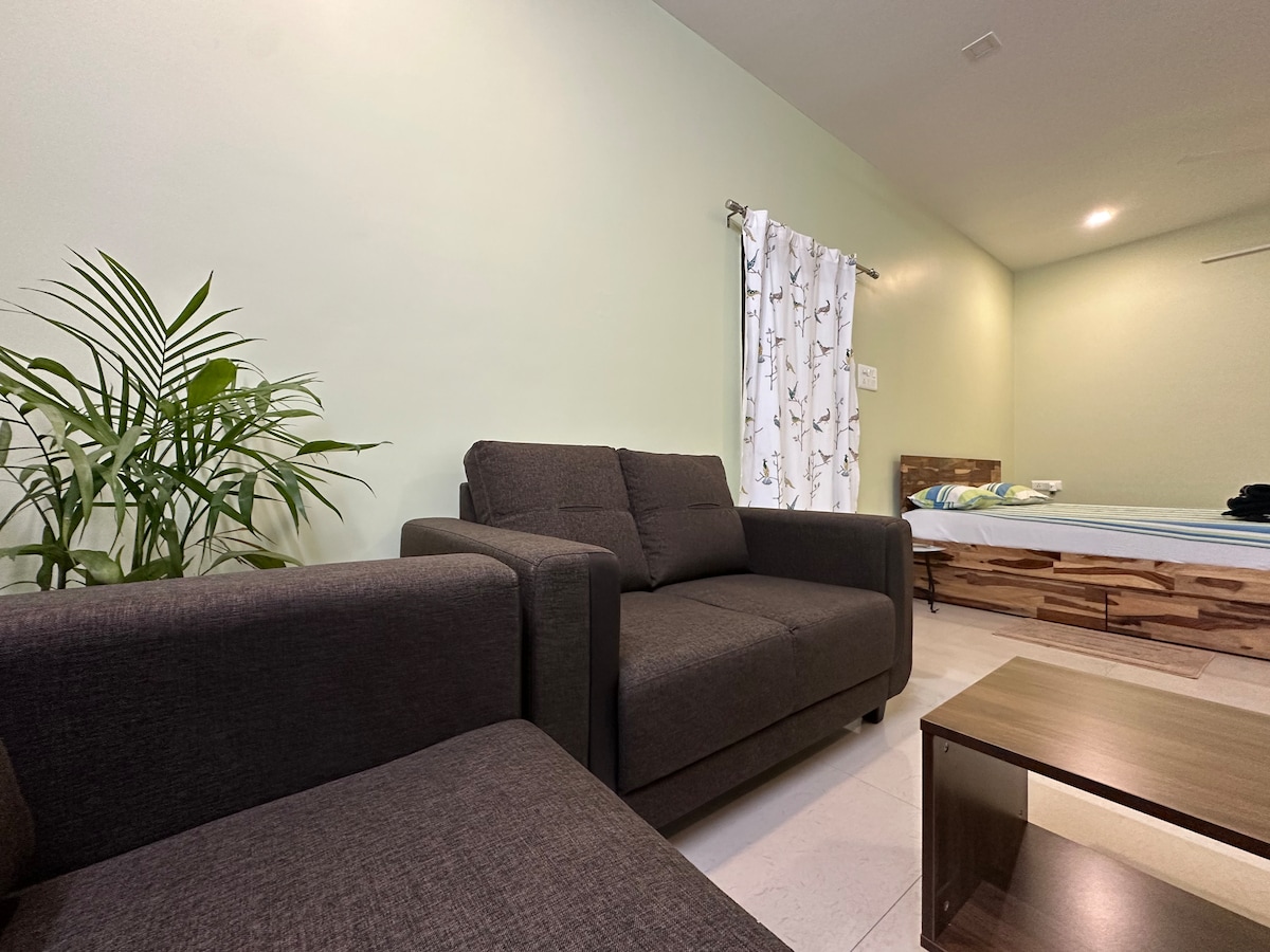 Wake up to the glow of mountains and unwind as golden sunsets paint the sky. A cozy Villa blends comfort, charm, and nature. Whether you’re seeking a romantic escape, a family on a peaceful holiday, or a remote worker craving mountain views, this villa offers it all. What You’ll Love: - Spacious Lime-wash finish Living Room for earthy vibes, 2 Bedrooms, and 2 Bathrooms. - Private Balcony & Garden Area — sip your morning coffee with birdsong. - Fully equipped kitchen. Pool on chargeable basis.
