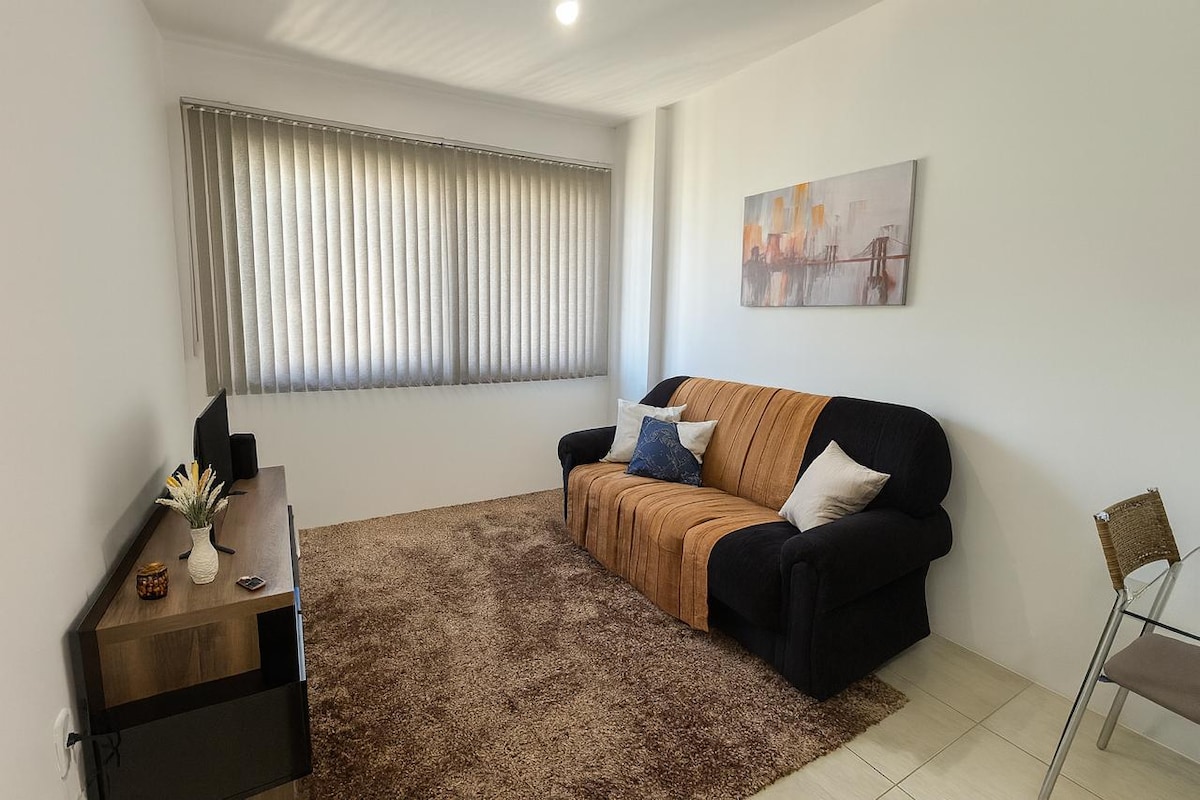 Com garagem Aconchegante studio no centro da cidade, ideal para até 3 pessoas. Localização excelente, a apenas uma quadra do Bella Città Shopping Center e próximo a mercados, farmácias e restaurantes. Compacto e bem planejado, é perfeito para quem busca conforto e praticidade. Não possui máquina de lavar, mas há lavanderia próxima.