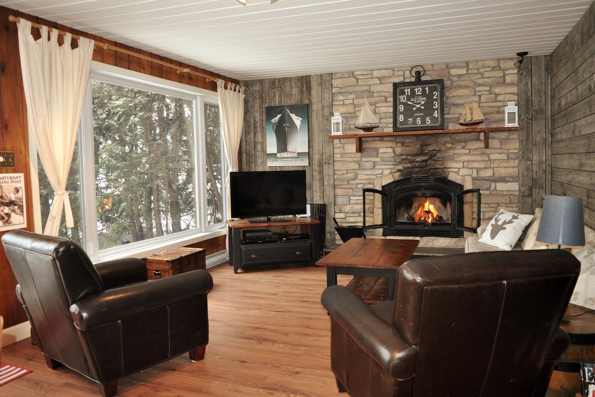 Serene, four season lakefront cottage, surrounded by a scenic mountain landscape, less than an hour drive from downtown Ottawa. Perfect for a family vacation, romantic get away or for a chance to relax, recharge, and commune with nature. Enjoy your morning coffee overlooking the water and spend your evenings relaxing beside the fire in a peaceful private setting.