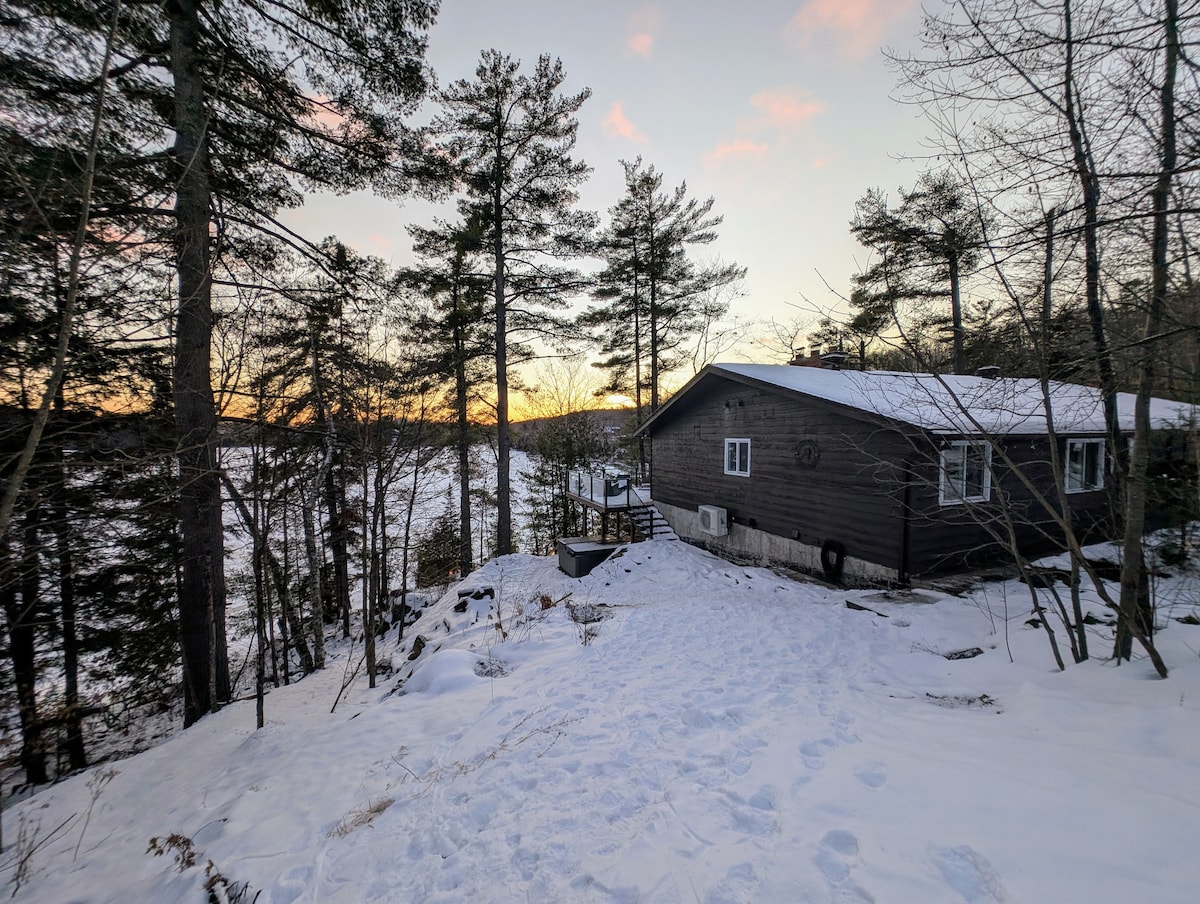 Aux abords d'un lac, le Parc de la Gatineau est un superbe chalet en A parfait pour se déconnecter de la ville tout en étant idéalement situé pour vous permettre de bien profiter de tout ce que la région touristique de Gatineau/Ottawa a à offrir. Nos mini-chalets sont équipés pour vous permettre de relaxer avec leur spa ou d'effectuer du télétravail dans leur bureau aménagé à cet effet. Nos chalets seront un endroit où vous vous presserez de revenir puisque vous y sentirez comme chez vous.