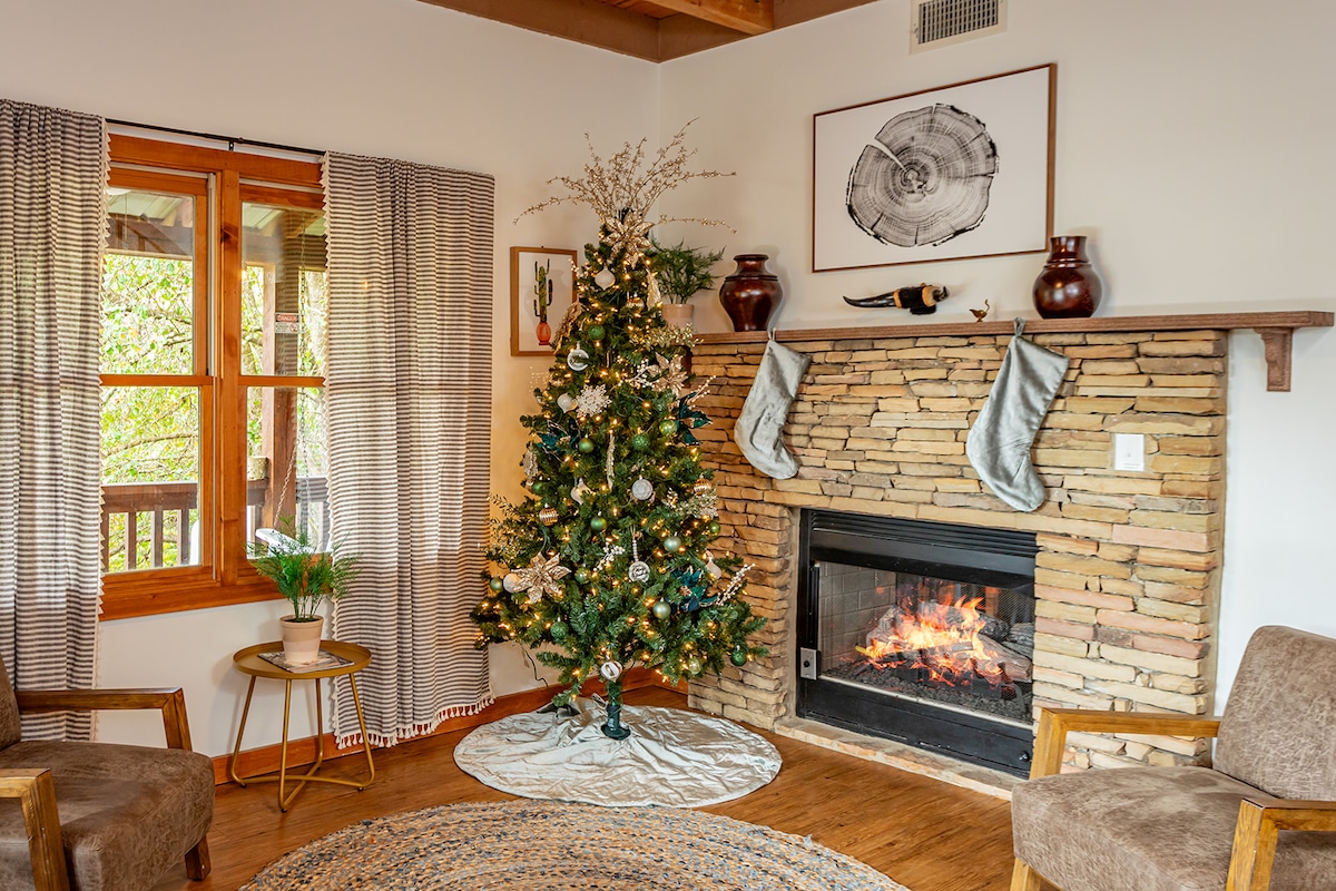 豪华私人度假木屋!距离市中心2英里/加大双人床/热水浴缸