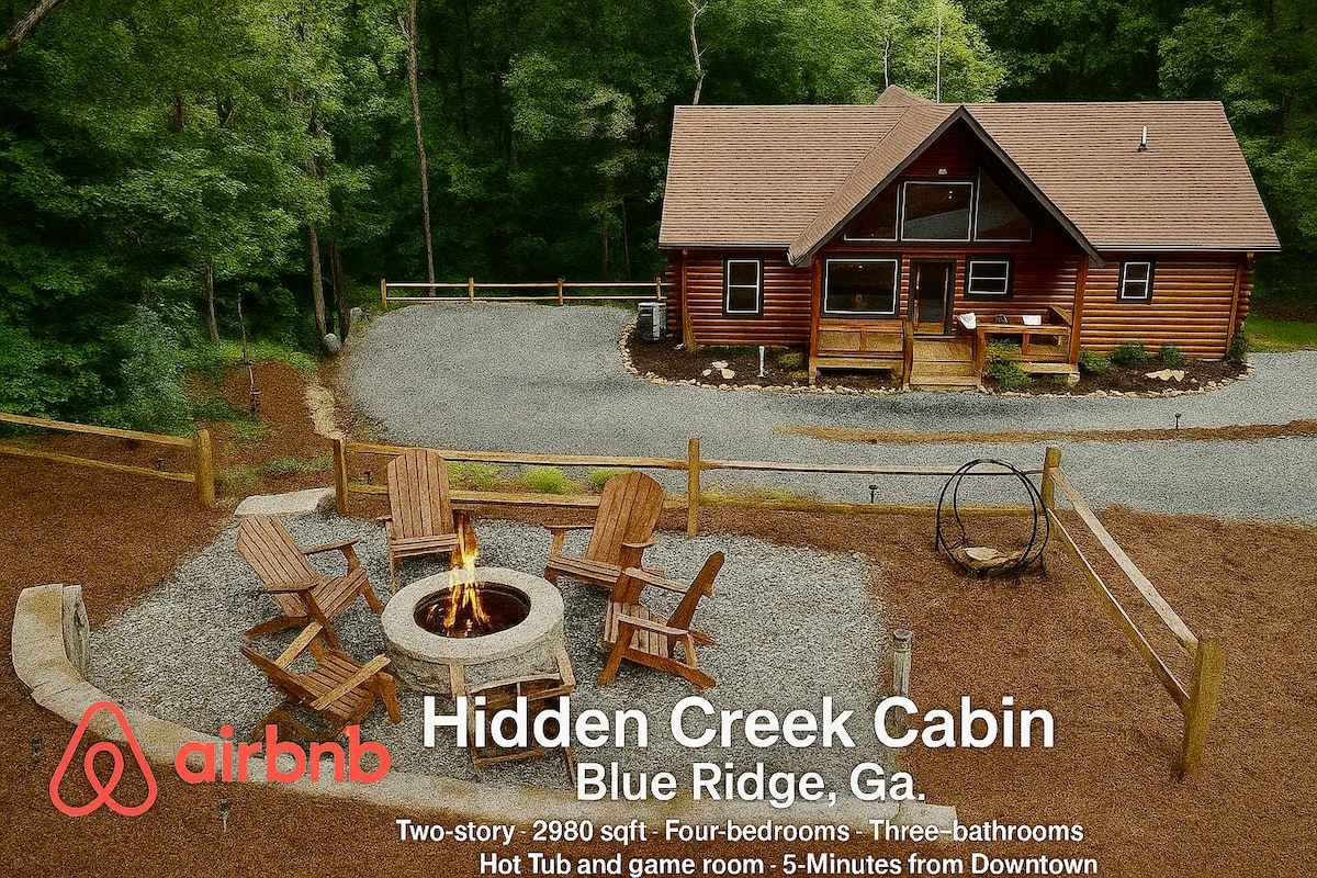 Moss + Oak ✨ Modern Zen Cabin | Creekside Getaway Near Downtown Blue Ridge Escape to our serene, Zen-inspired cabin nestled beside a gentle creek and surrounded by nature trails. Relax in the private hot tub, unwind in the cozy movie loft, or venture out to explore the charm of Downtown Blue Ridge and the nearby lake! 🌟 Highlights: Private hot tub, board games (Chess, Connect 4, Jenga), fully equipped kitchen, coffee bar, and fast Wi-Fi. Tap the ♥️ to save this stay and find it easily later!