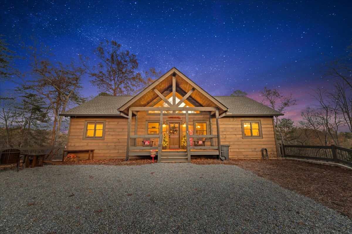 Get away & enjoy scenic mountain views in this luxury 3-bedroom, 2-bath cabin set on 10 acres. This cabin is minutes from Downtown Dahlonega, wineries, breweries, Big Creek Distillery, North Georgia Zoo, and the Chestatee Wildlife Preserve. The house is equipped with a gas fireplace, exterior firepit, Big Green Egg, 85" TVs and a retro arcade with over 5,000 classic games. While it's a favorite amongst wedding goers, this home is setup perfectly for the whole family, w/dedicated kids playroom.