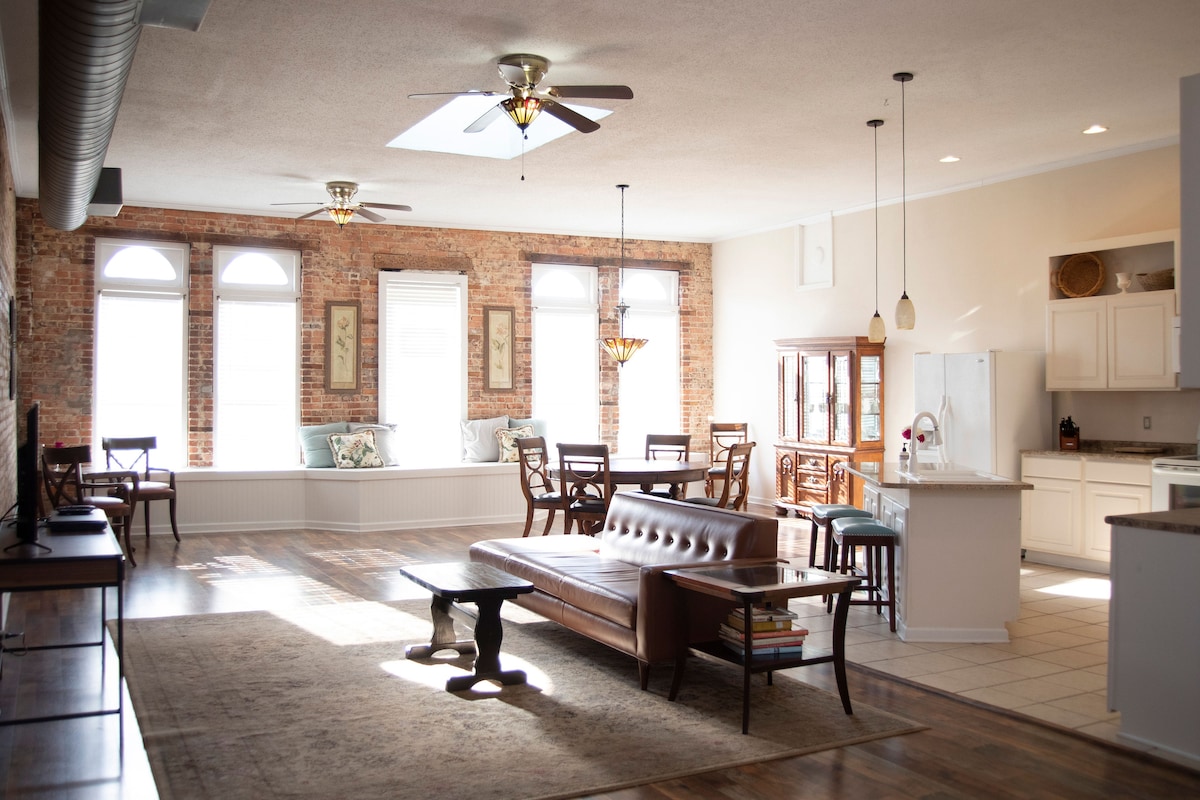 This Bohemian Chic loft is in the heart of downtown Macon. Enjoy bars and great food, in walking distance to Macon nightlife. Great for couples to stay for a long weekend, for guest traveling for work and even for those just passing through Macon to their final destination. This loft offers spacious rooms which includes a bedroom with a king size bed and sofa bed in the living room allowing for up to 4 people. Both living room and bedroom have televisions with Roku.
