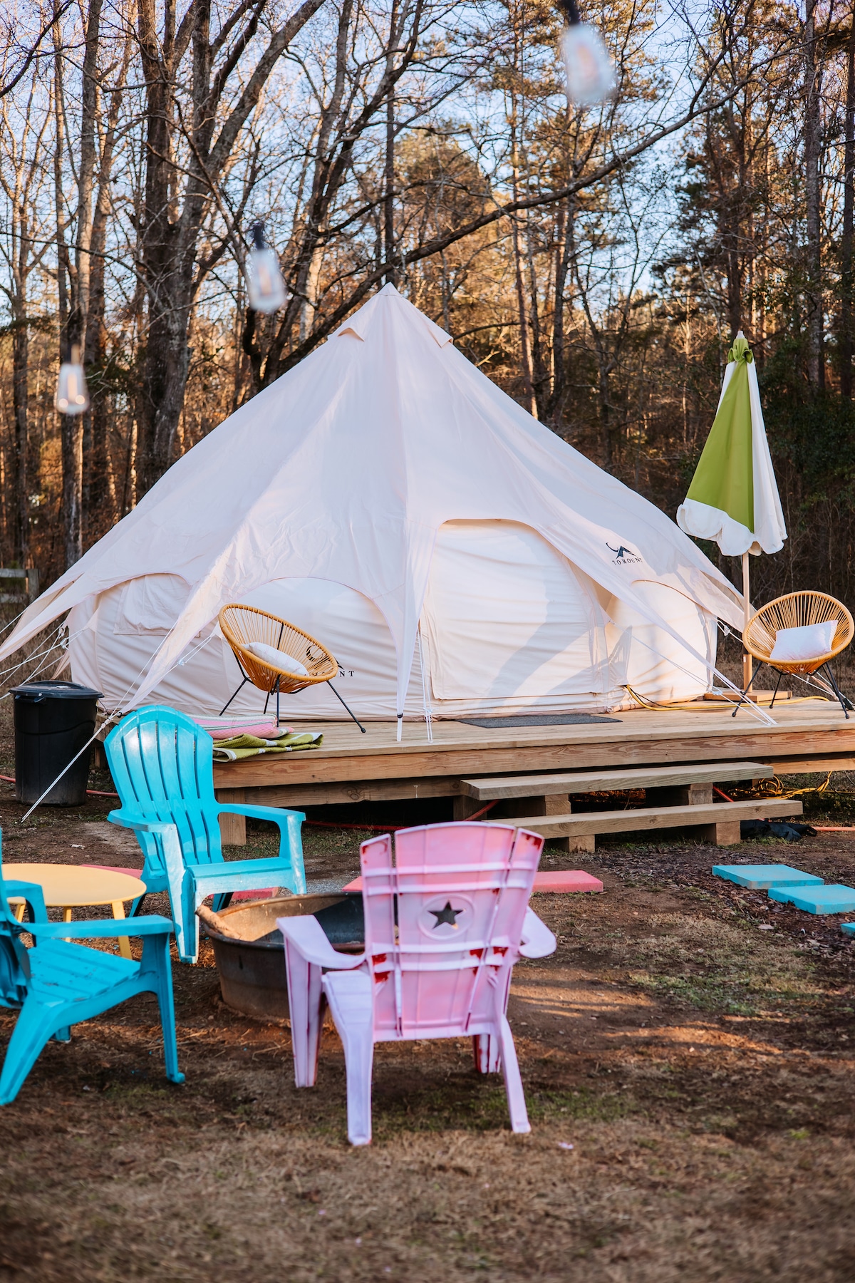 The Mushroom Tent at Kingston Downs is set on a private property on 5,000 acres in Northwest Georgia. Conveniently located 45 minutes from metro Atlanta and Chattanooga and a convenient ten minute drive to downtown Rome. Enjoy exclusive access to our private hiking and biking trails along the Etowah river. Come relax and unwind where wildlife abounds and the stars are amazing. It's a perfect reprieve from the mundane and a quintessential getaway.