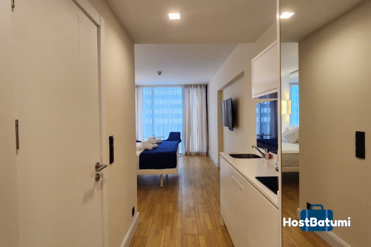 Wake up every day to breathtaking Black Sea views through the panoramic windows of our light-filled studio! Located in the iconic Porta Batumi Tower, just steps away from the beach, Seaside Boulevard, and the Old Town. This studio is perfect for couples or solo travelers who appreciate refined coastal living, tranquility, and comfort.