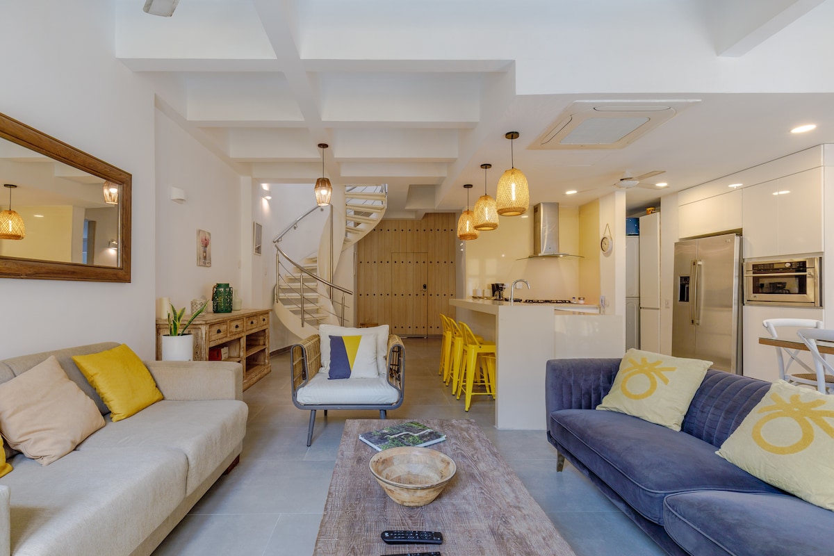 DESCRIPCTION 3 bed rooms apartment. On the lower floor a loft lounge area and adjacent dining room with open kitchen has direct access to the wooden terrace afloat the internal patio. There are two bedrooms with private bath as well as a guest bathroom on the lower floor and the main room on the second floor. The apartment is totally independent and shares only the common areas ( roof top and swimming pools ) with the guests of the rest of the house where is established a small luxury hotel