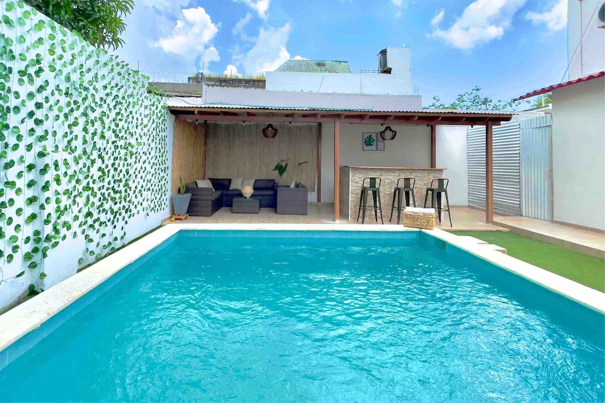 Charming “Casa Salesiana” in the Old City — Plunge Pool, Open Living Space & Yoga Deck. ★ “Cozy, clean and perfectly located for exploring the city.” ☞ Walk Score 98 — steps to cafes, dining, plazas ☞ Therapy plunge pool + yoga/motion deck ☞ 3 king bedrooms, each with private bath ☞ Patio w/ hammock + outdoor lounge ☞ Fast WiFi + dedicated workspace ☞ Bluetooth sound system ☞ Onsite washer + dryer ☞ 42” smart TV 10 mins → Bocagrande beaches 20 mins → Rafael Núñez International Airport ✈