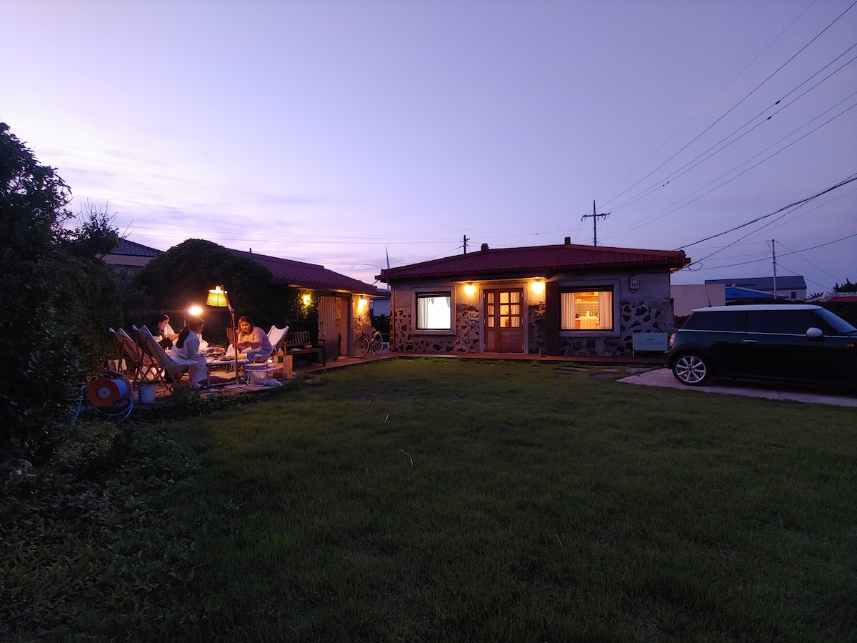 원룸형 복층구조를 가진 숙소입니다. 1층 거실,욕실,화장실,TV,주방이있고 계단을 올라가면 더블침대와 싱글침대가 나오는 침실이 있어요. 넓은마당과 정성껏 가꾼 잔디와 나무들이 있어 아이들이 뛰어 놀기에 좋아요. 마당에서는 아름다운 비양도와 바다가 보입니다. 은퇴한 부부가 정성껏 가꾼 정원이 멋진 집입니다. 협재(금능)해수욕장까지 차로 5분거리 옹포바닷가 100m거리에 있어요. 주위에 유명한 식당과 까페가 많아요.