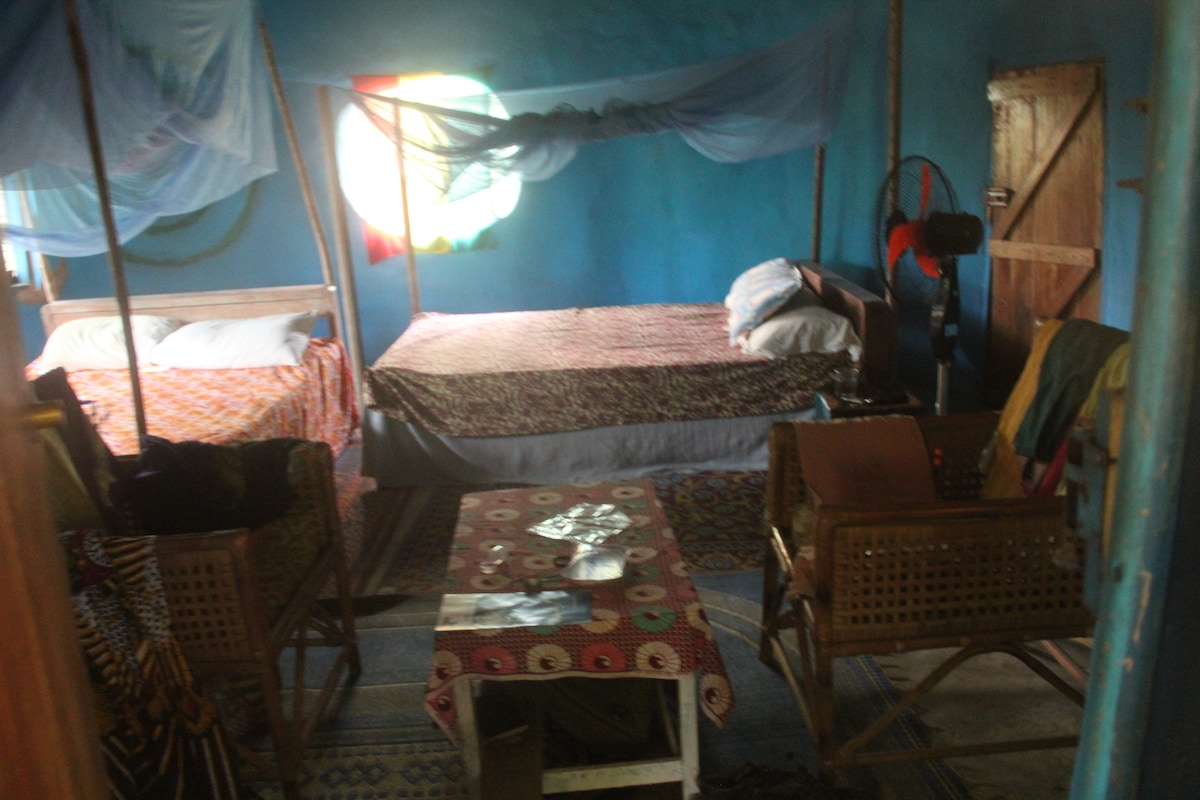 You have now landed in Middle earth at Green Zion Garden. A beautiful garden grown and built by Ellis who is here to serve you amongst beautiful nature in your own privacy. Hammocks, seating areas, restaurant and bar in a rustic setting at a secluded beach. Paradise! Th room is made of clay, conical in shape with thatched roof and an adjoining bathroom. Two double beds can sleep up to 4 and a seating area inside. There is room for more mattresses for larger groups. Breakfast $5 in garden.