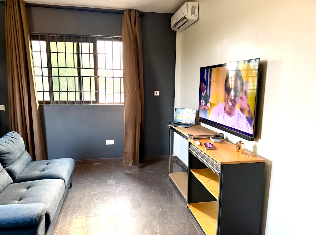 Escape to our luxurious 2-bedroom apartment, perfect for families & groups Enjoy: -Blazing Fast WiFi for work & streaming like Netflix -Big & cosy king-sized beds for a perfect sleep -Gated compound with electric fence, parking space for up to 7 cars, automated gate. -🌼Garden with soothing fountain and kids play area -Outdoor sitting area for relaxation/smoking -Connects you easily to Cape Coast & Elmina Castles 🏰Kakum Park, restaurants. Book now & experience the best of Ghana hospitality