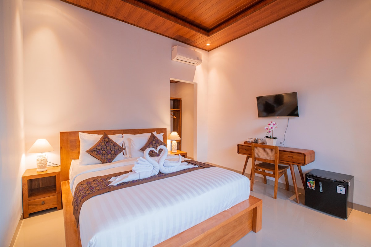 Villa Kayu is hidden beauty of ubud, where 2 Bedroom wooden house stand on the edge of green rice fields and the backdrop of mount agung. Where you will spend time to relax from your busyness and problems.The villa provides tranquility and cool air,make you feel that you holiday will be unforgettable. Designed by combining wooden buildings and unique carvings, the Villa Kayu looks elegant with touch of friendliness that will always pamper you.