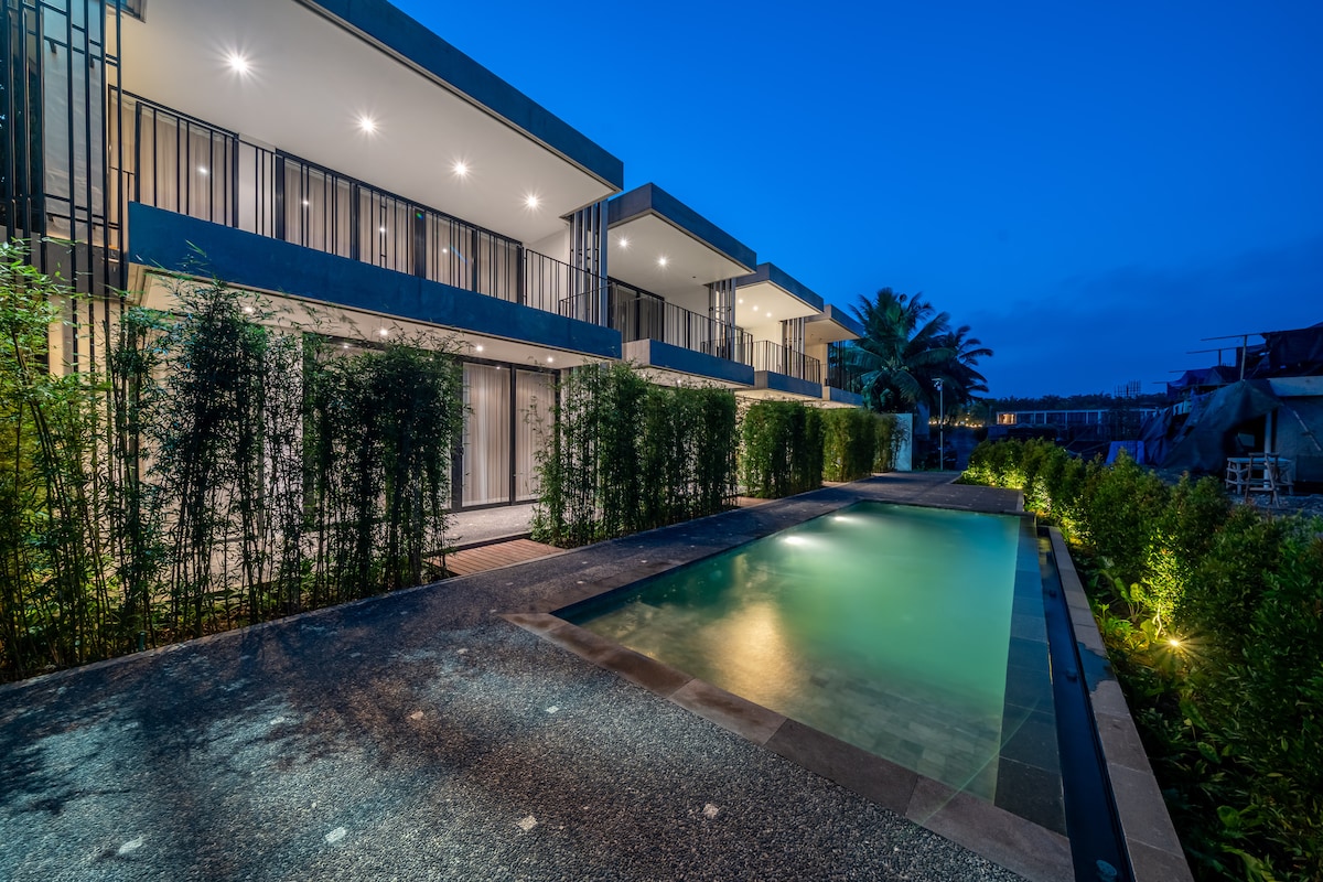Brand New Townhouse in Central Ubud • 2 stylish air-conditioned bedrooms across two floors • 2 modern bathrooms — master-suite with a bathtub • Swimming pool surrounded by tropical plants • Spacious upstairs balcony patio with open views • Bright open-plan living, kitchen & dining area • 300 Mbps Wi-Fi for remote work & streaming • Netflix & PS5 on request • Baby cot & high chair on request • Daily cleaning with fresh towels & linens • Concierge service for scooter rental, private drivers & more