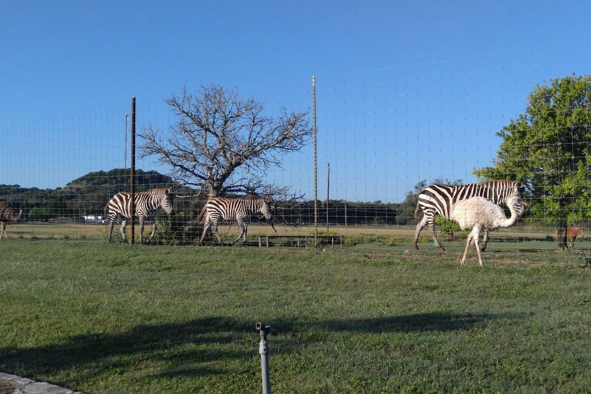 Craving a getaway with family or friends for wine tasting, great food and gift shopping? Want to enjoy their company, but unwind in your own space? Around the Bend Bungalow and Airstream Alfresco are located approx 12 minutes from Main St. with its abundant eateries and unique shops or 10 minutes from breathtaking views on Enchanted Rock. End your evening in a rocking chair admiring the endless stars. Longhorns wander our pastures and you share the location with an abundance of wildlife!