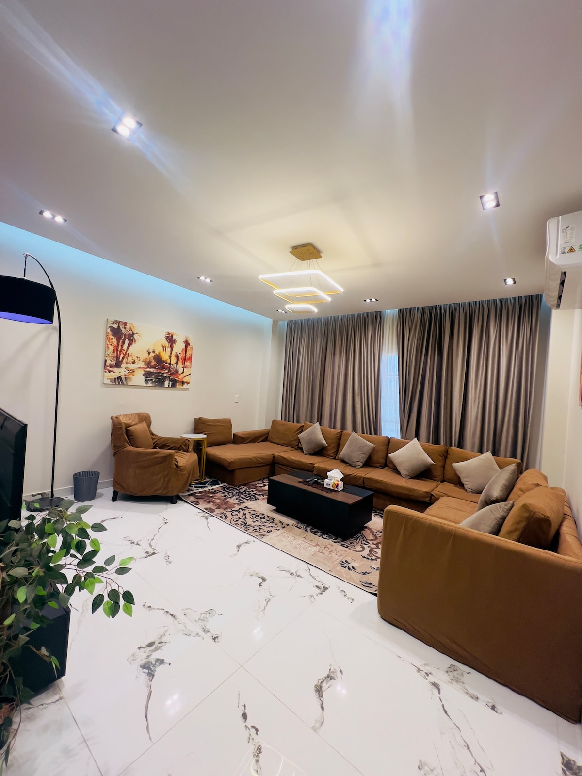 تبدو وكأنها وحدة خرجت للتو من مجلة للتصميم الداخلي، أليس كذلك ؟ هل يمكنك تخيل التواجد في واحدة من تلك الوحدات ؟ الآن أصبح الأمر حقيقة واقعة. جناح فاخر مفروش فرش فندقي بحديقة خاصة لك وحدك مزود بجميع وسائل الراحة نعمل علي استقبالك بشكل احترافي وتحقيق اقامتك الفندقية. قريب جدا من مجمع كامل من مطاعم وكافيهات وبراندات عالمية قريب من مول بوينت 90 - شارع التسعين تم الاعتماد على البساطة في هذا المسكن الهادئ والاستراتيجي. حي اسكان الجامعة الامريكية من ارقي أحياء التجمع 5 - يتميز بمستوى معيشة راقي