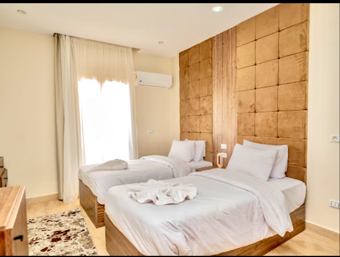 Bring the whole family and friends to this great place with lots of beds for perfect stay in dreamland resort compound in Egypt Classy,sunny and cozy nearby Giza pyramids and sphinx airport Security24/7 Balcony overlooking the swimming pool and landscape Private garden private entrance to flat from pool Basic amenities are 2 mins away (market-pharmacy-laundry-spa and bakery) Nearby mins walking to Golf course Hotels Mall of Egypt Flags mall Saudi hyper market Pegasus Equestrian center