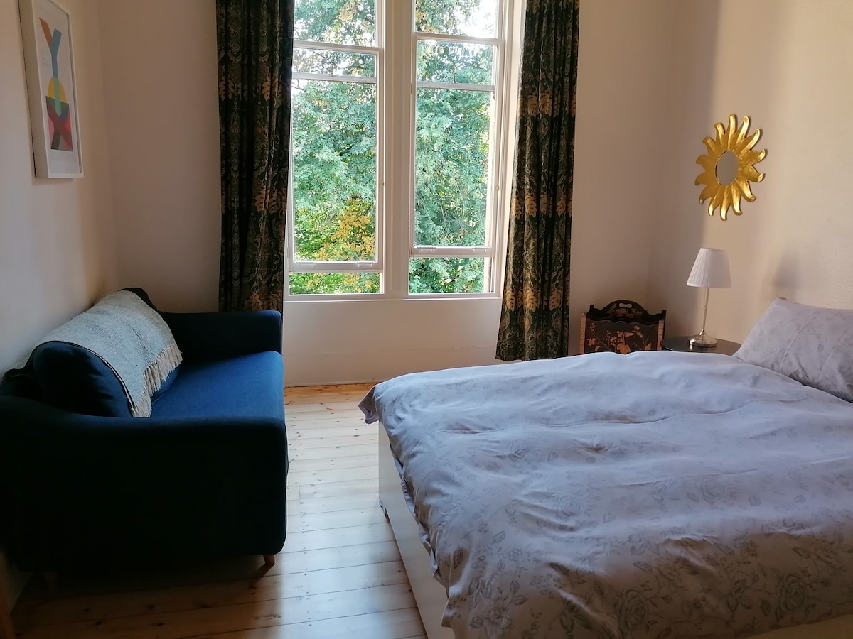 This self contained West End Hideout is part of a converted lower level Family Townhouse located in the heart of Glasgow's famous West End with it's own secure access and is only a stone's throw away from Botanic Gardens.THE LOCAL AREA has a good mix of small independent shops and quality high street names. It is a foodies' haven with two specialist cheese shops, butchers,whole-food shops, numerous delicatessens and stores such as Waitrose and Marks & Spencer are all within a very short walking distance. There are also wonderfully atmospheric second hand book shops, vintage and retro clothing stores, gift shops, jewellers and of course plenty of coffee shops, restaurants and bars.There are a wide range of places to eat from great value budget to widely acclaimed, well established restaurants. Five of Trip Advisor’s top ten restaurants in Glasgow are all within a 15 minute walk. Nearby Ashton Lane is great for visiting during the day and evening for shopping, coffee, eating, drinking and catching a film at the local Grosvenor Cinema. Music and plays can also be found at Oran Mor and Cottiers theatre with various pubs hosting more informal music sessions.