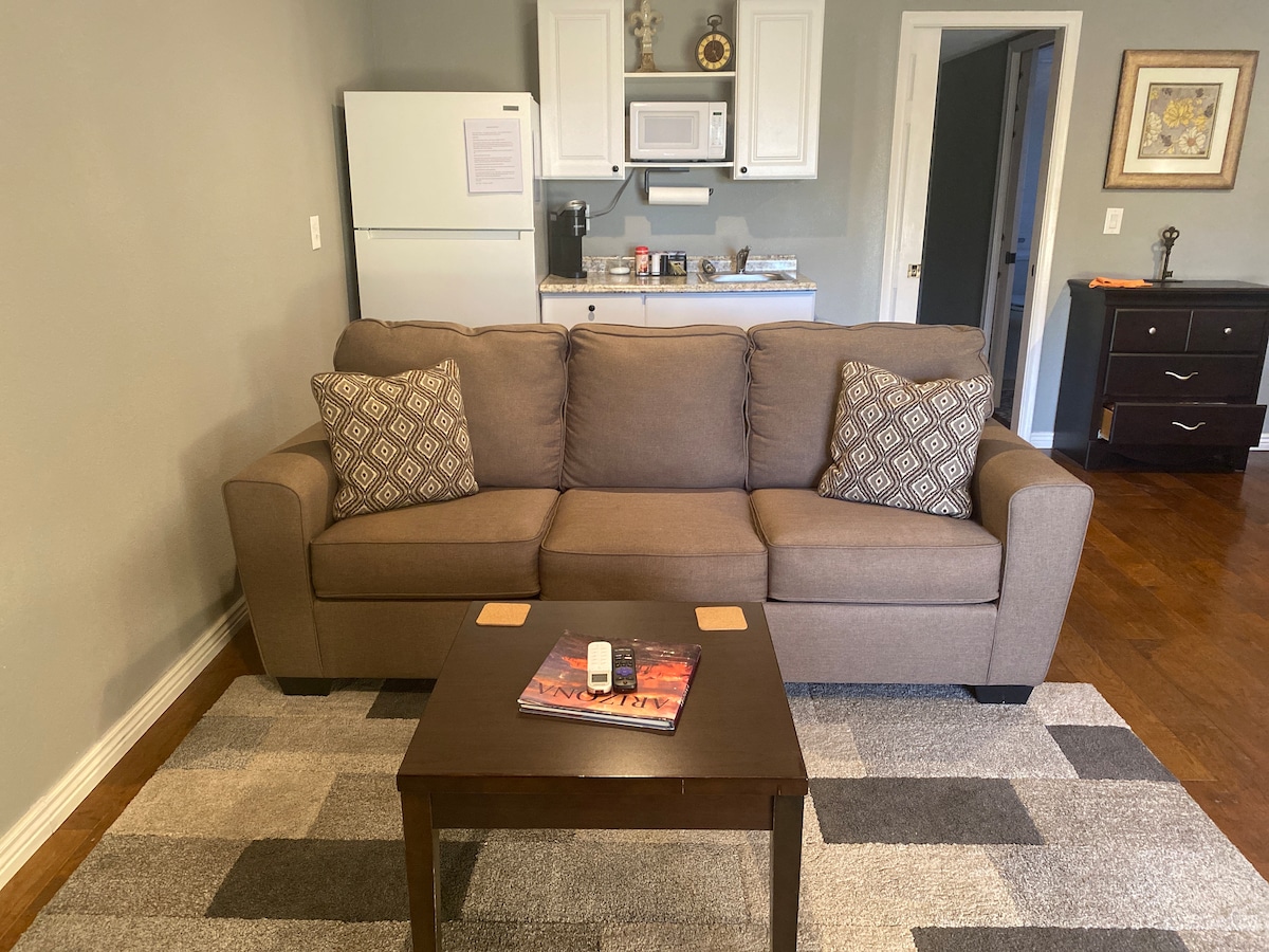 Private suite w/ keyless door access, dedicated AC unit, TV, WiFi, kitchenette w/ microwave & mini fridge & Keurig coffee maker, outdoor patio with pavers and sitting area. Updated walk-in tile shower. Walking distance to The Wigwam Golf Resort, restaurants, & parks. 7 miles to AZ Cardinals Football Stadium. NO SMOKING, NO VAPING, NO MARIJUANA, NO ELECTRONIC SMOKING DEVICES. VIOLATERS WILL BE SUBJECT TO PAY ADDITIONAL CLEANING FEES UP TO $500.00. City of Litchfield Park license # 3065
