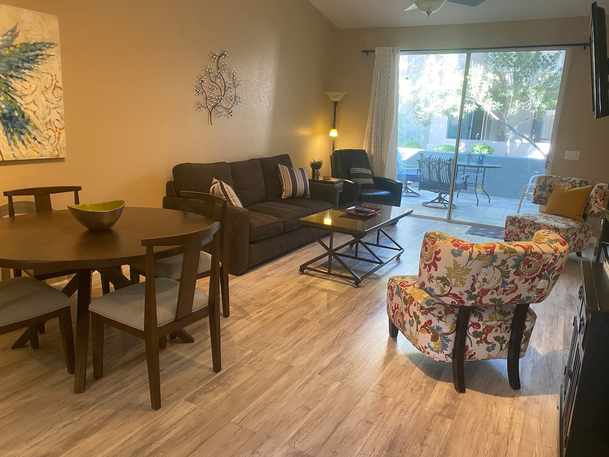 Welcome to your first-floor, stylish condo in North Scottsdale’s desirable neighborhood! This curated space blends Southwest charm with modern updates. You’re just minutes from golf courses, best hiking trails, and quick freeway access. Next to a heated pool, Jacuzzi, and gym. Covered parking is right outside your door. Walk to grocery stores, shops, restaurants, parks, and pickleball courts. Plus, easy access to Mayo Clinic and WestWorld nearby! Attentive hosts are always ready to help.