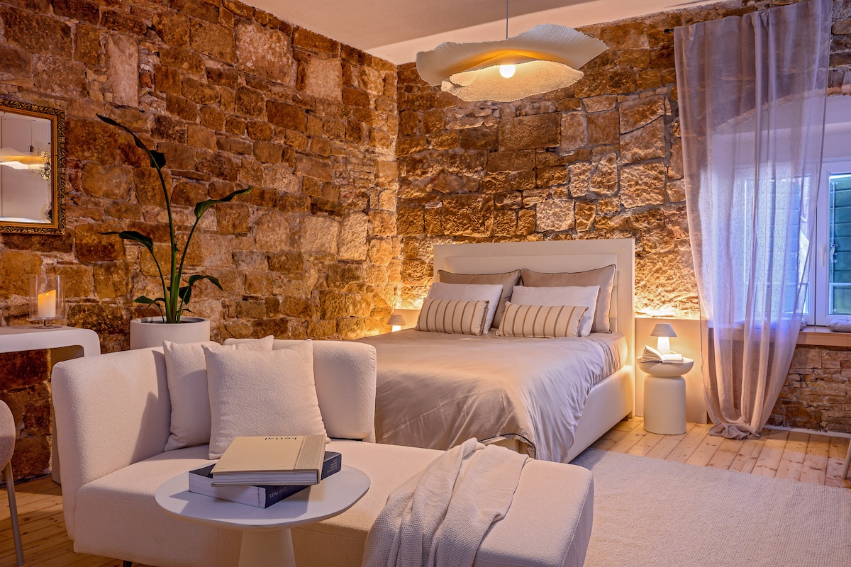 Nestled within the ancient walls of Diocletian’s Palace this charming two-level stone studio offers the perfect base for travelers looking to experience the heart and soul of Split. Step outside and find yourself just moments from the Golden Gates, the Peristyle, the Riva Promenade, bustling cafés, quirky restaurants, and centuries of history all around you.