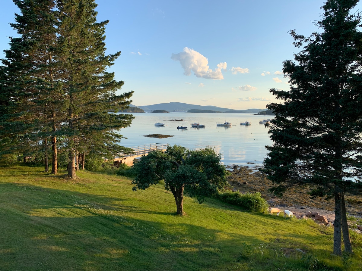 This cottage is located on a working, lobster fishing harbor. 2 gracious porches, one screened the other open, face Cadillac Mountain located at Acadia National Park (a 45 minute drive away). The cottage is built on a single level with two cozy living rooms and a large kitchen dining area. You will be delighted with the indoor/outdoor feel of the space. Only 6 miles away is Schoodic @ Acadia Nat'l Park where biking, hiking and quintessential Maine views abound!