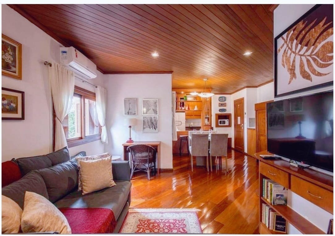 A poucos minutos a pé do centro de Gramado, no Jardim Bela Vista acomoda confortavelmente cinco pessoas (uma cama box Queen no quarto e um sofá cama Queen e uma cama solteiro auxiliar). Wireless, Netflix, garagem e salão jogos.