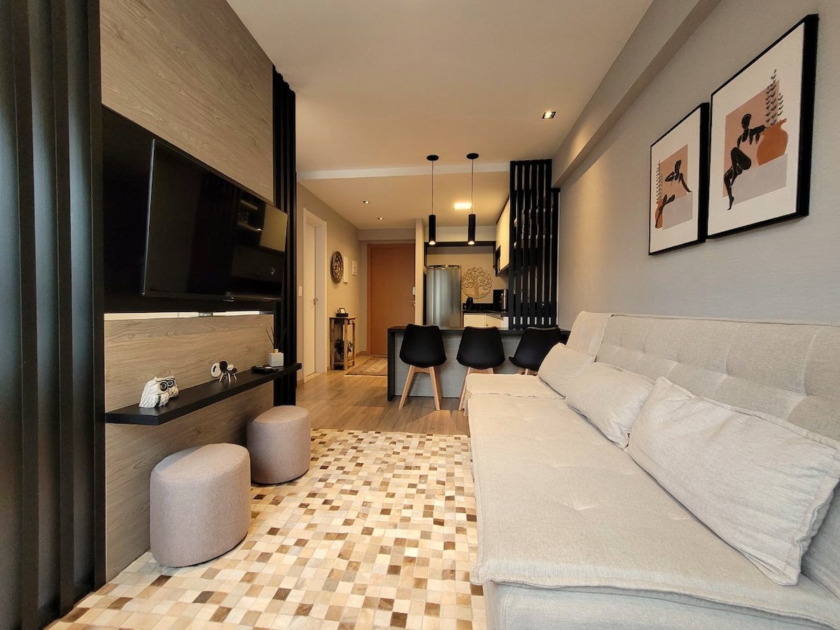 Estúdio de 40m² no charmoso Vita Boulevard. 🛏️ Capacidade: 3 pessoas + 1 bebê 🎁 Kit de boas-vindas 📍Apenas 500m da Rua Coberta. 1 cama queen | 1 sofá-cama | 1 berço desmontável Localizado no 2º andar com vista para o charmoso pátio interno do Boulevard. Ideal para casais, famílias pequenas e quem busca praticidade com charme no coração da cidade.