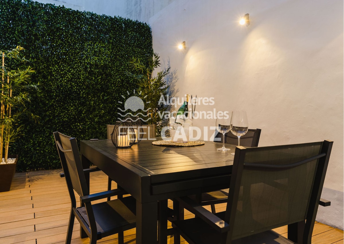 A 3 bedroom traditional apartment that has recently been lovingly refurbished. We kept its traditional charm but added high-end modern features. A large private patio creates a unique space within Cadiz's historic centre. It is our special retreat and we hope you love it as much as we do. Beach / main attractions / restaurants: within 5 min walk you will be able to stroll along the sea front, head to the shops or eat at amazing restaurants (we left a list of our favourites for you).