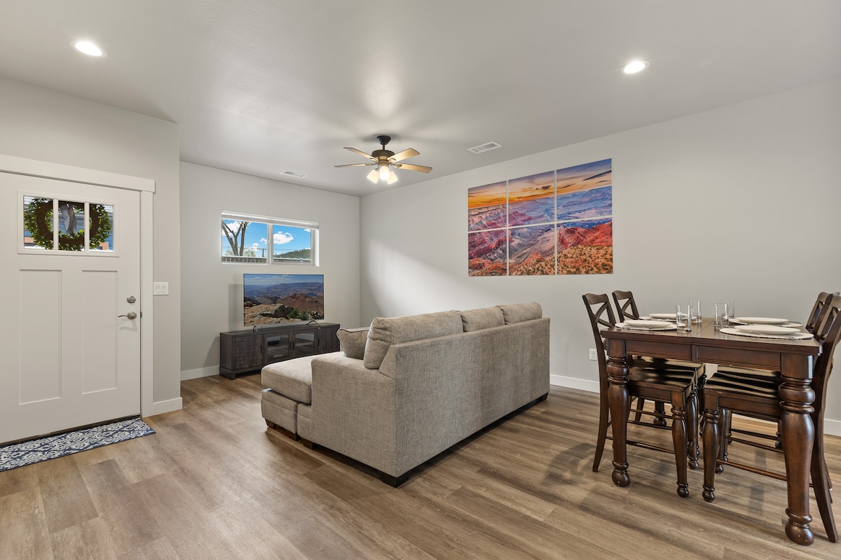 Welcome to our spacious 5-bedroom home in the heart of Williams, Arizona! Perfect for families or large groups, this home offers a range of fantastic amenities and breathtaking mountain views. Our home is designed for comfort and entertainment, with 5 well designed bedrooms, and amenities such as a 7-person hot tub, bonfire pit, outdoor kitchen, corn hole, bocce ball court, and even disk golf. Please note, this 5 bedroom home is part of a multi-family property connected to other units.