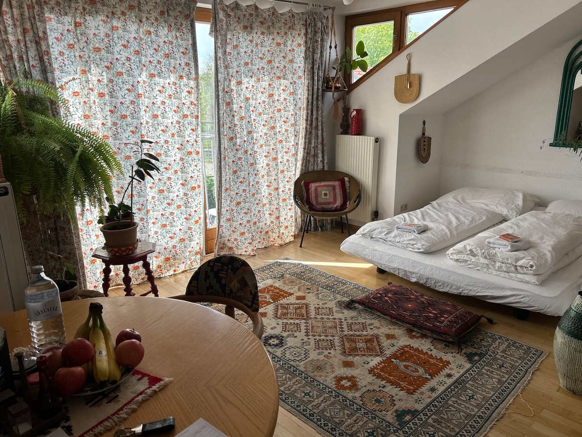 PLEASE READ THE DESCRIPTION carefully so that we can welcome you perfectly in our house. You will find a peaceful retreat, great hiking routes, a lot of silence and even convenient homeoffice. The basic price is for up to 4 people, including THE STUDIO (living room, kitchen, bathroom) and 1 BEDROOM . If you want a FURTHER BEDROOM (1 double bed) please BOOK 5 PEOPLE.
