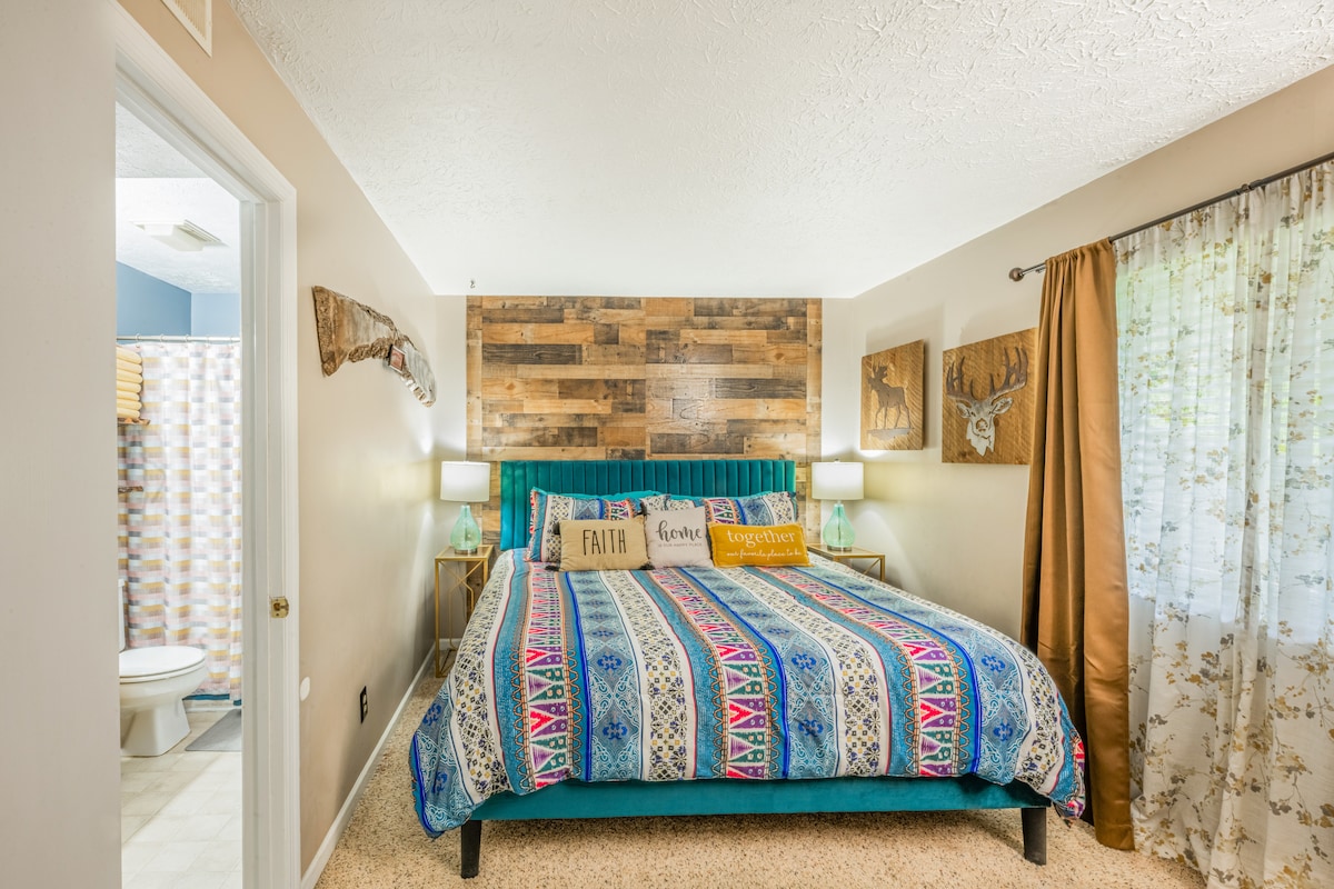 豪华私人度假木屋!距离市中心2英里/加大双人床/热水浴缸