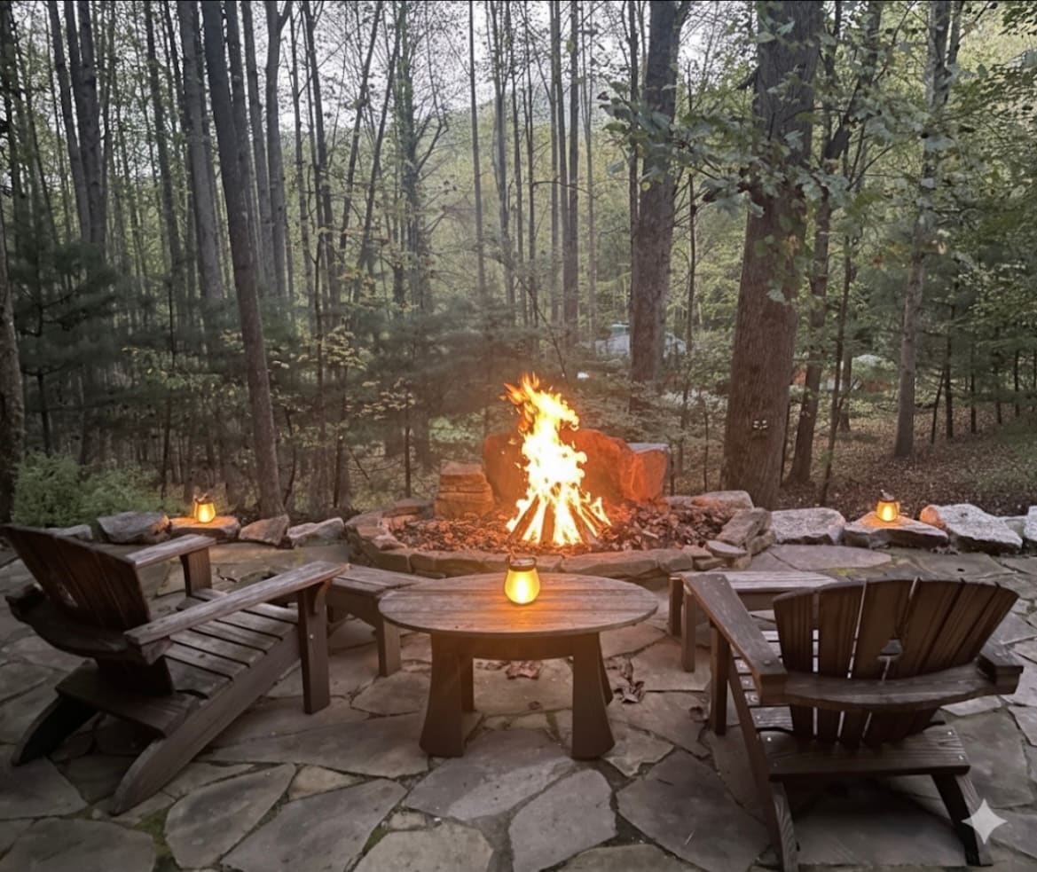 High Calling is the lower level of a home on Cataloochee Mountain, at 4300’ elevation. Enjoy the panoramic views year round from a private covered porch or around the fire pit as you relax with the peaceful sound of the creek below. A charcoal grill is also provided. Two bedrooms, one with a queen size bed, the other with one full bed and one twin bed face mountain views. A sitting area with a television and games, kitchenette and coffee station are provided, along with snacks and drinks.