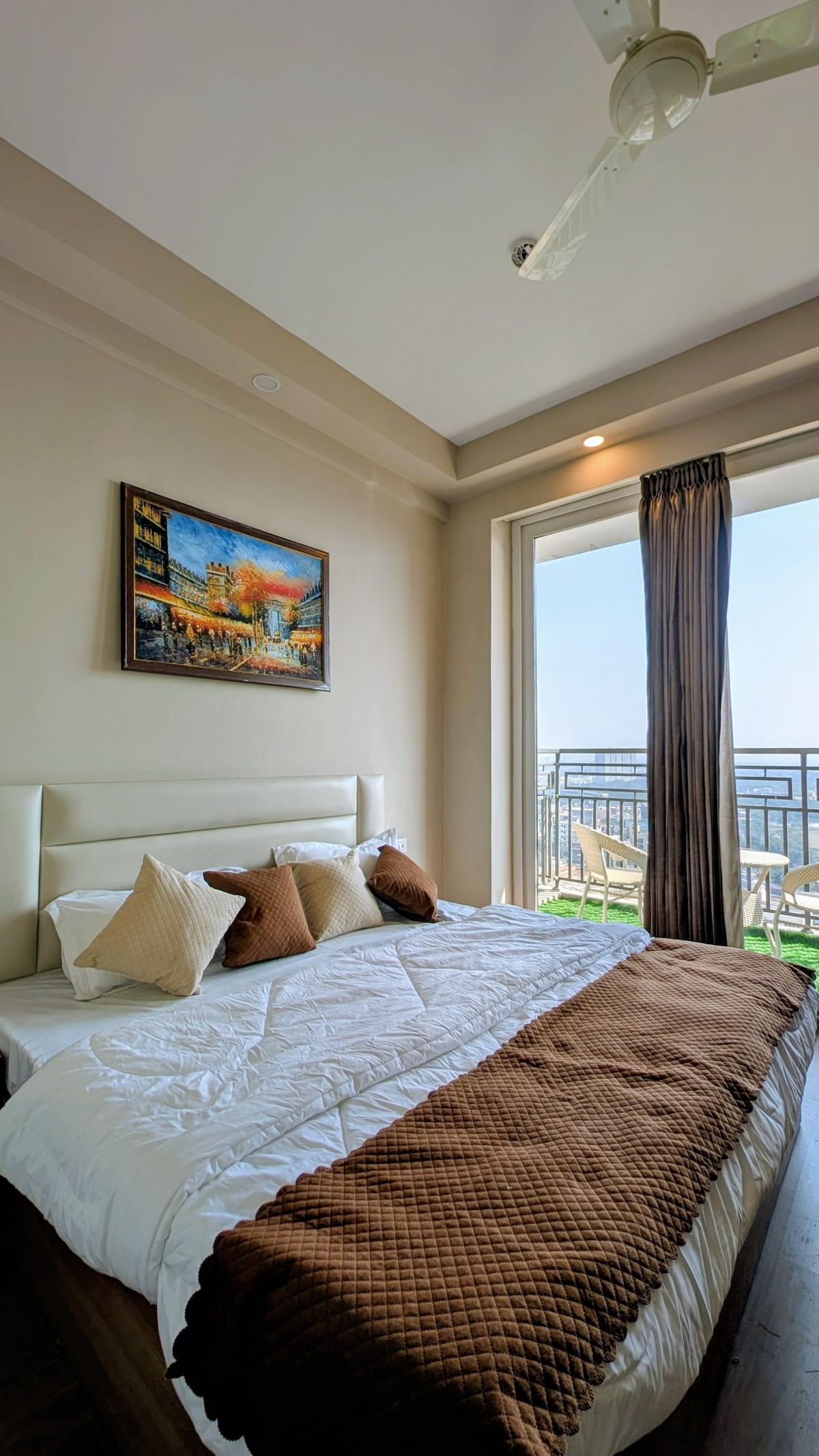 Welcome to Serene Stays Relax in modern studio with balcony & stunning city views. Fully equipped kitchen. Market downstairs for convenient dining. Book your comfort stay hassle free stay ✨️✅️