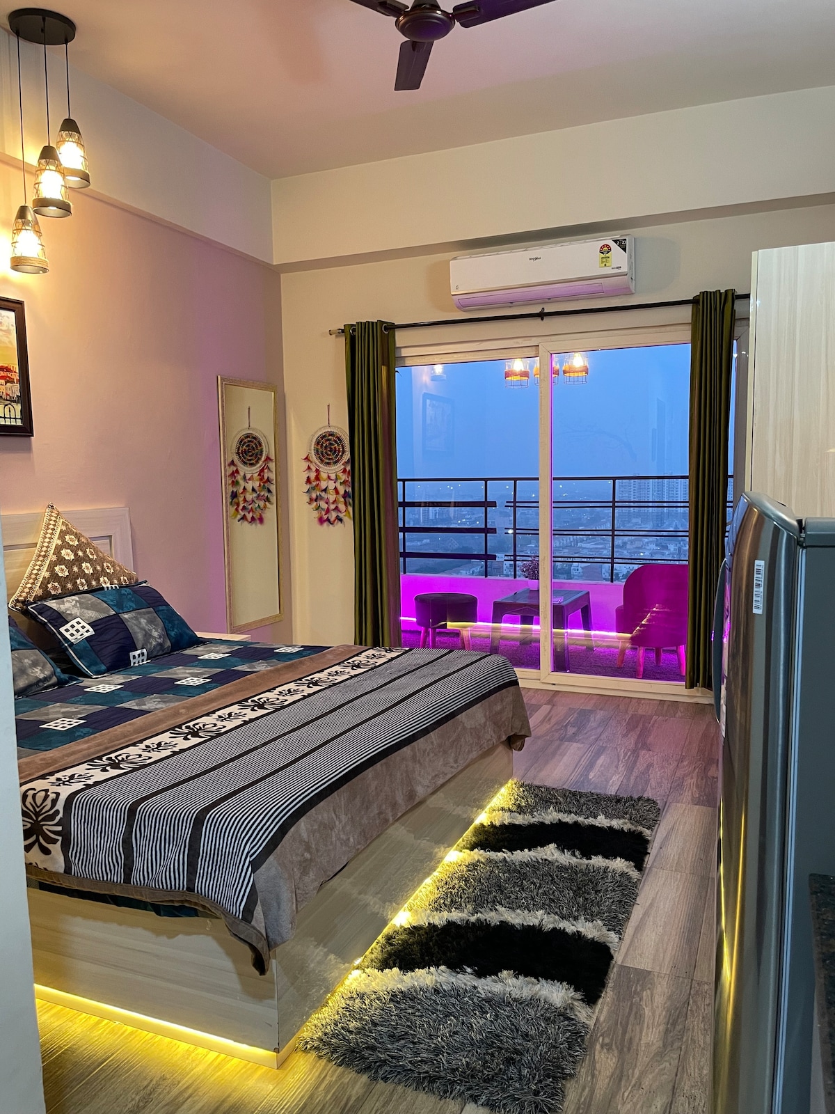 Fully furnished luxurious studio apartment with all modern amenities available in Greater Noida near Metro station. Luxurious , Specious and Couple friendly studio in Greater Noida Near Expo Mart. What You’ll Love: ✔ Unique Interior – Enjoy the Mesmerizing Interior. ✔ Modern Comfort – A beautifully furnished space with a comfy bed, cozy seating, and stylish decor. ✔ Fully Equipped Kitchen – Cook your favorite meals with ease. ✔ Fast WiFi & Smart TV – Stay connected and entertained.