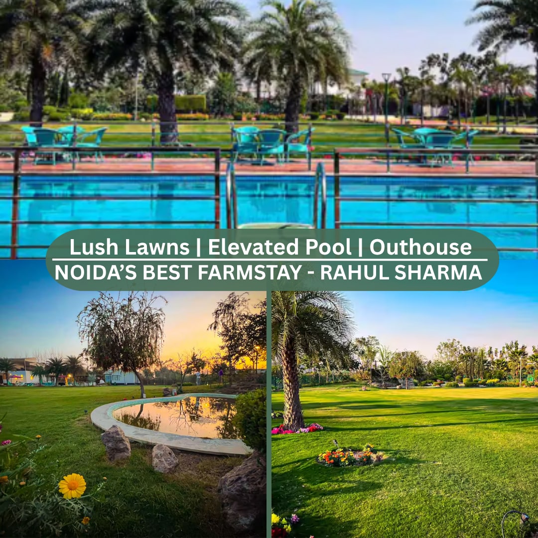 The Oasis – A brand-new 4-bedroom luxury party farm in Noida, Delhi NCR! Located just 10 minutes from The Shriram Millennium School (Sector 135) and near Old Club Road (Green Beauty Farms), it’s the perfect getaway for unforgettable moments.