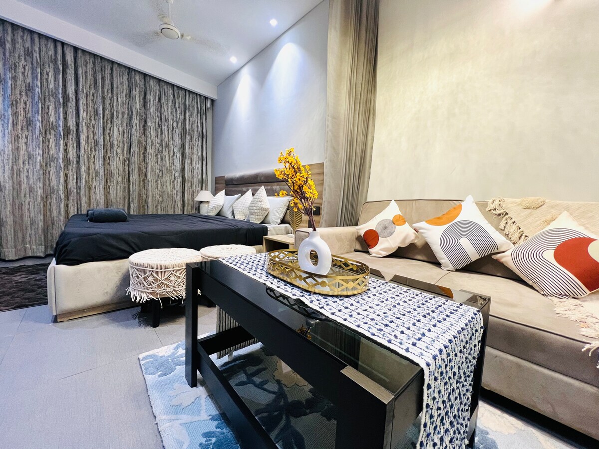 This luxury studio apartment blends sleek design with cozy comfort, offering a seamless home‑away‑from‑home experience. Inside, you’ll find contemporary amenities, stylish décor, and a functional layout perfect for both relaxation and productivity. With the Metro station just steps away, shopping, dining, clubs, roof top bars and entertainment options are at your fingertips, while nearby parks and business hubs add convenience. Experience luxury living in a vibrant, well‑connected location.