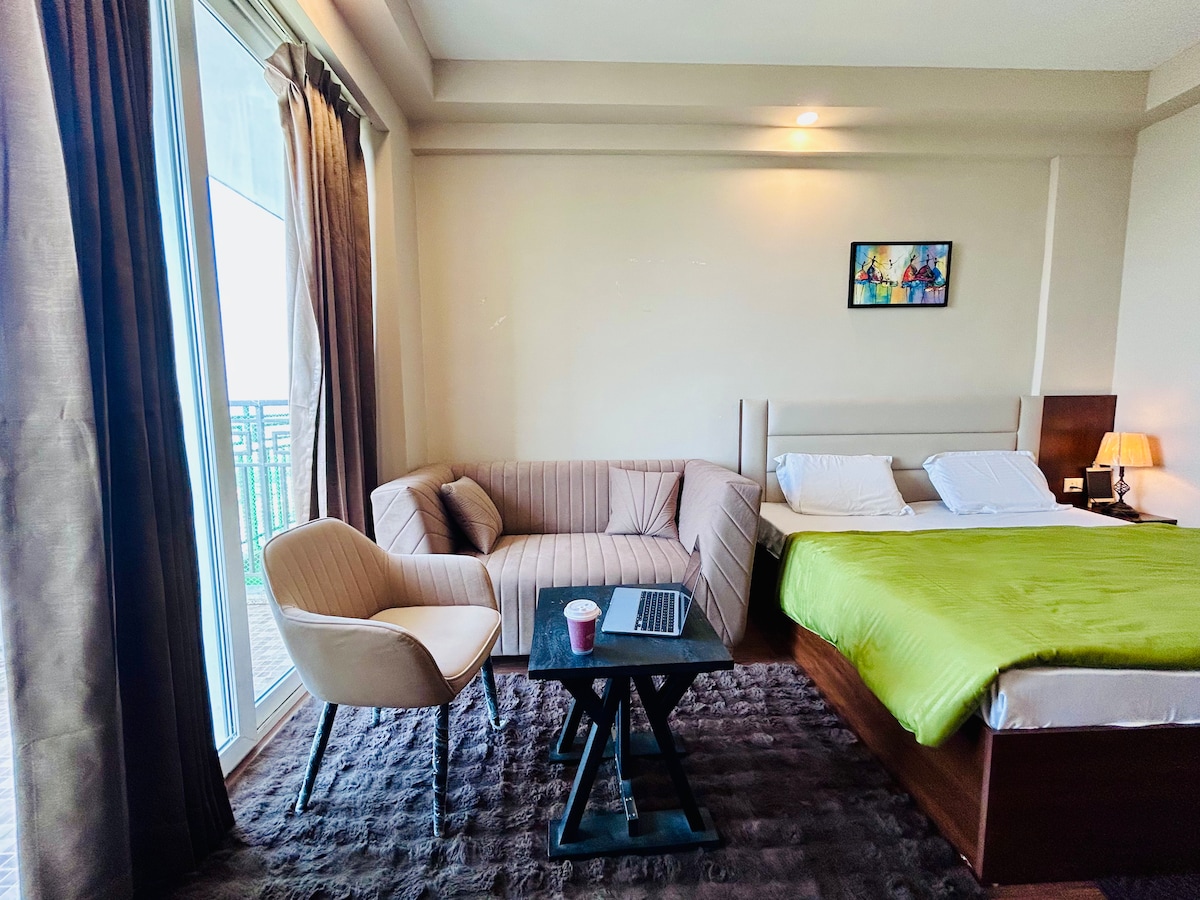 - A peaceful apartment on the 17th floor - Centrally located, easily accessible -A homely vibe - A full fledged kitchen for preparing meals - Food delivery available 24/7 - Self check in private studio apartment - Wifi available (100 mbps) - Hot water available - Private balcony available - Breathtaking views - Cinema, shopping mall, eateries/ restaurants available at walking distance - Free basement parking - Looking forward to provide you with the most memorable experience